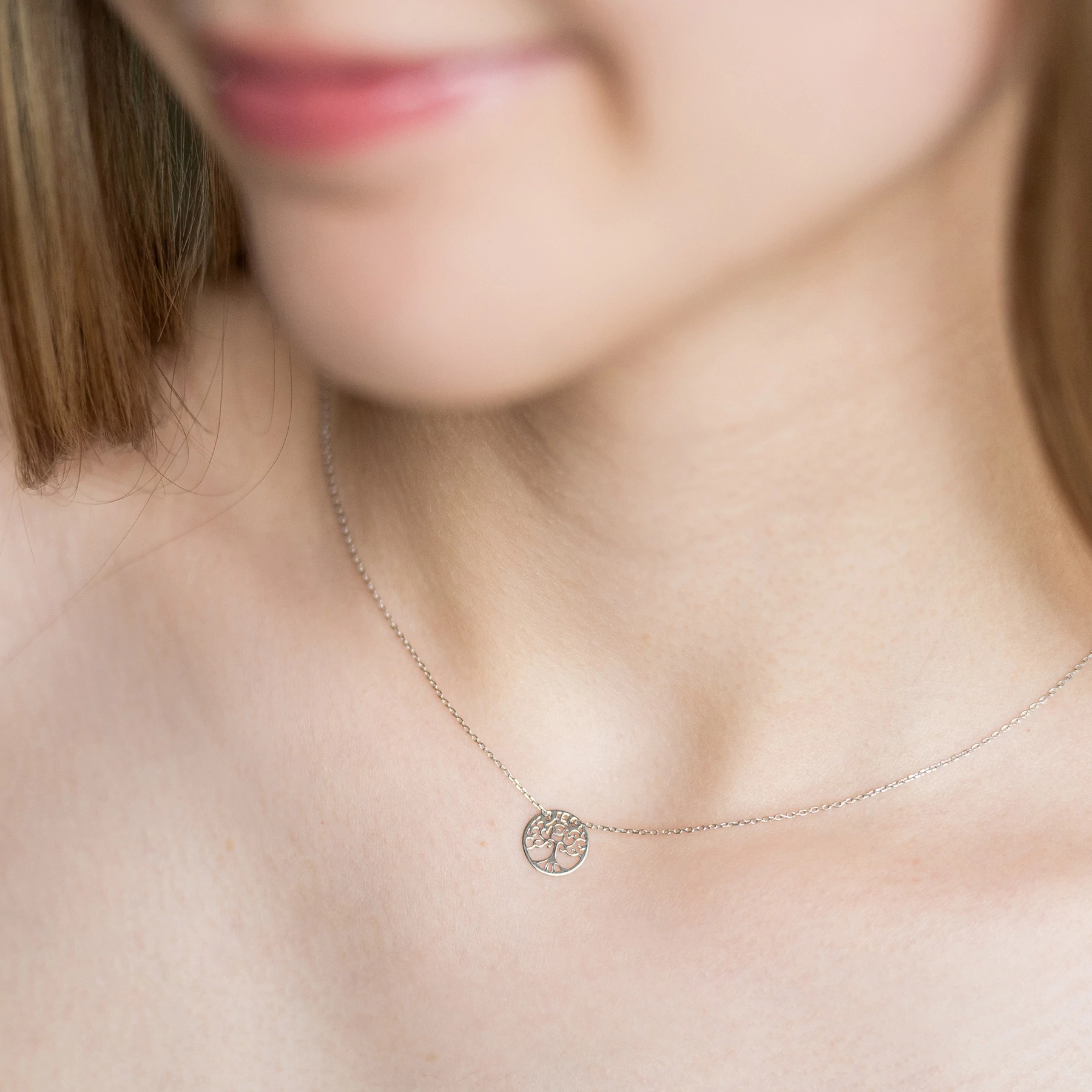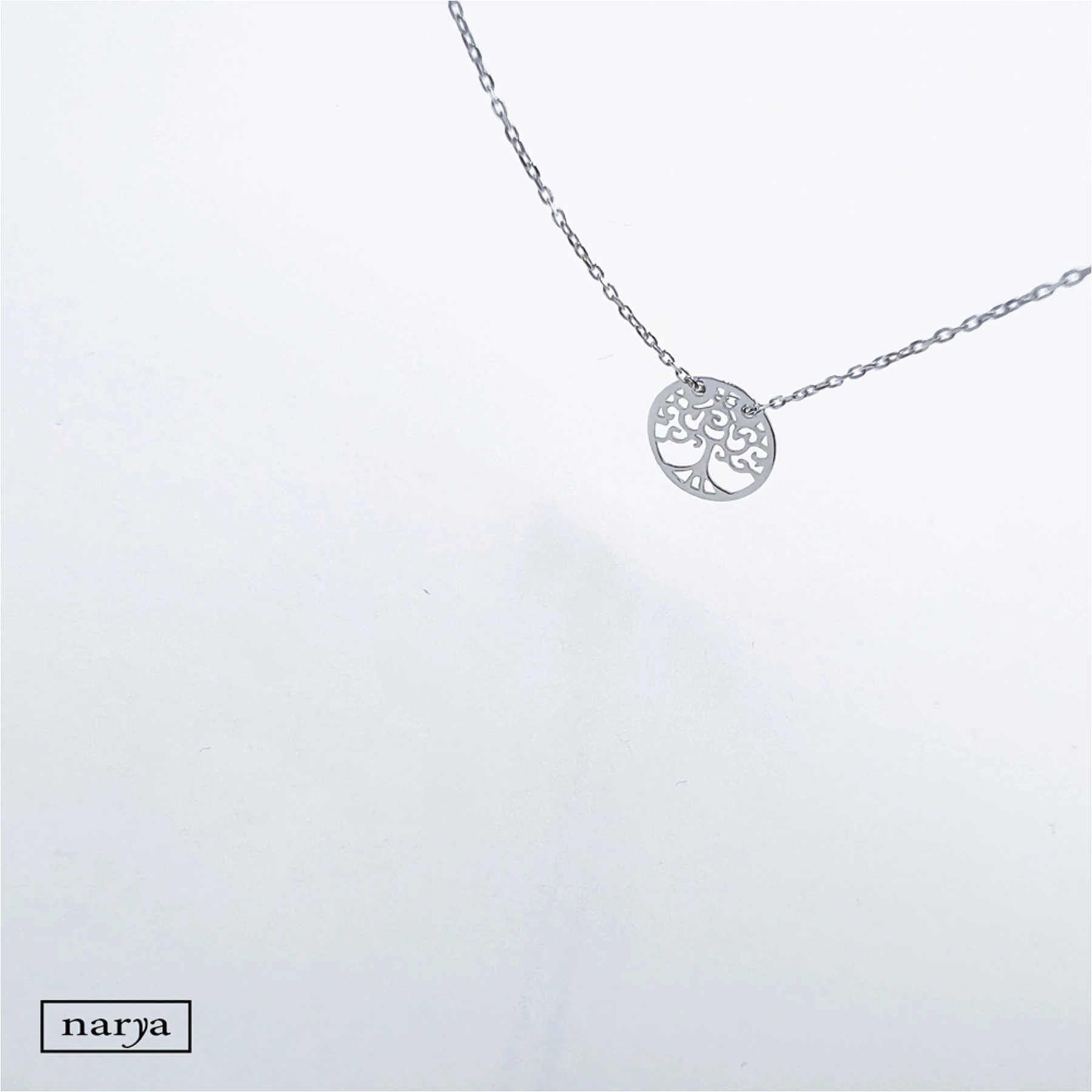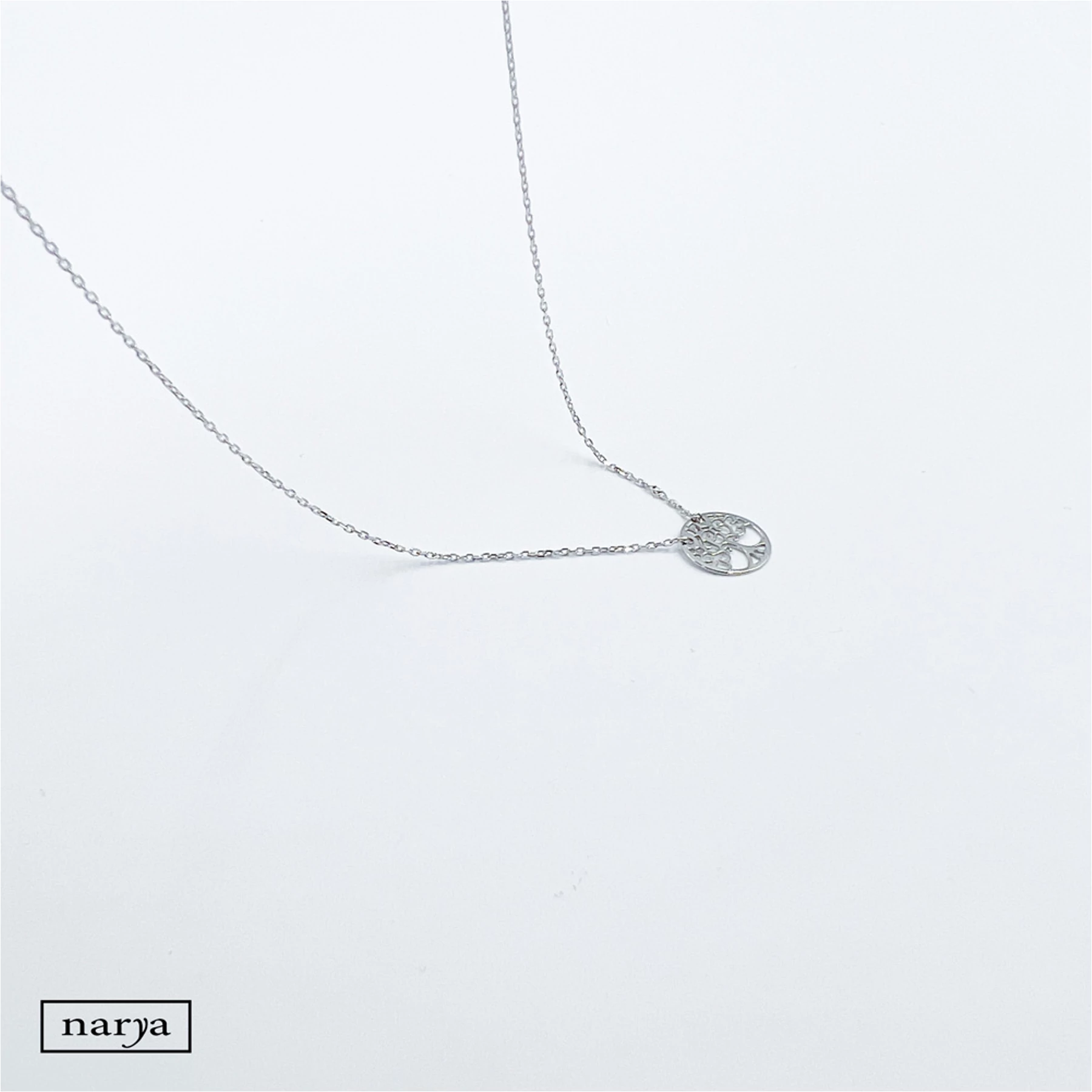 Aléna nyakláncunk egy gyönyörű 14 karátos fehér arany nyaklánc. A fehér arany anker nyakláncon egy kör alakú életfa medál lóg, mely csuszka medálként van rögzítve. Ez az igazán visszafogott nyaklánc gyönyörűen fekszik a nyakon.