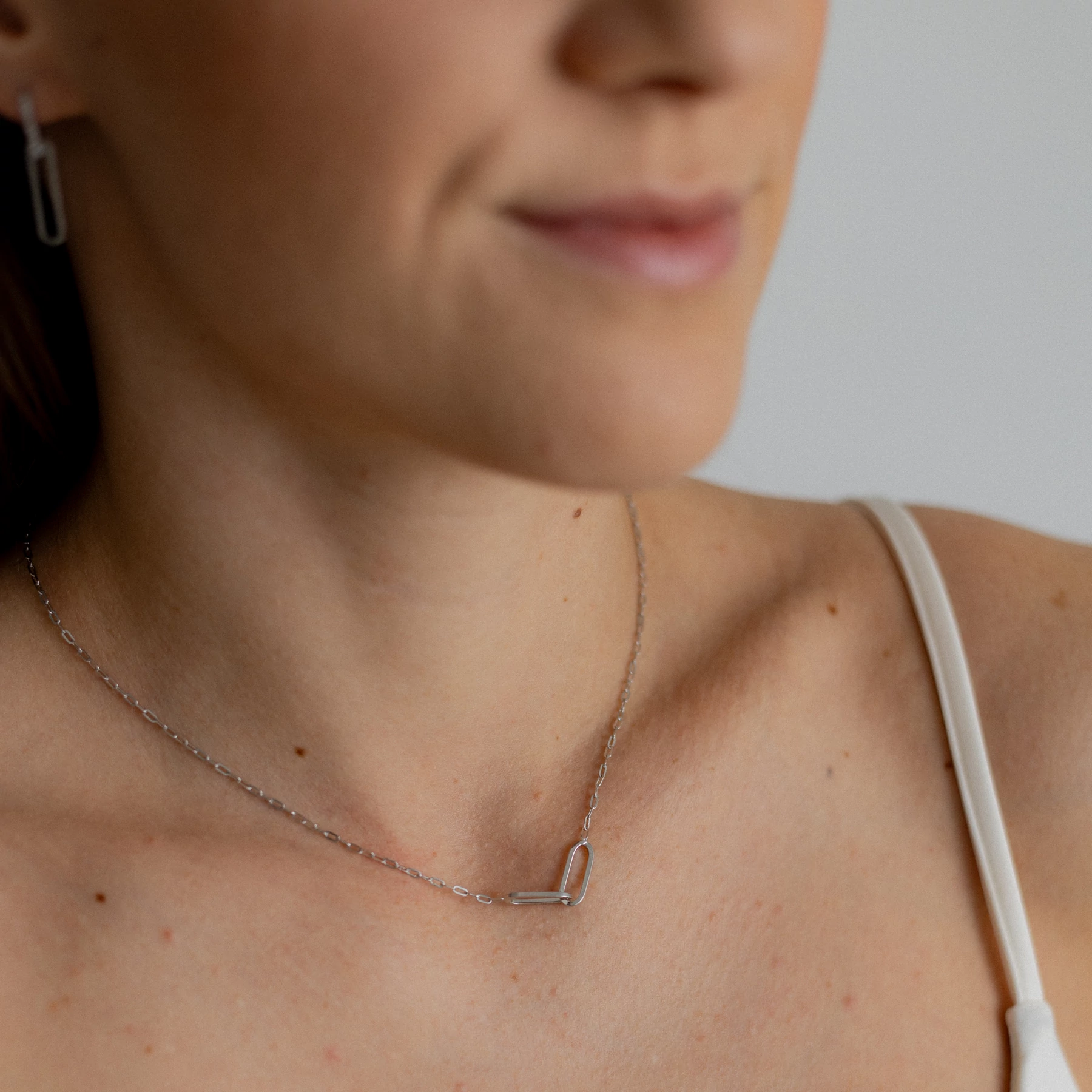 Almitra ezüst ékszerünk egy imádnivaló, ródiumozott, nagyobb láncszemekből álló nyaklánc, mely különlegessége, hogy a medál része 2 nagyobb láncszem, melyek egymásba kapaszkodnak. Almitra nyakláncunk hosszúsága állítható.