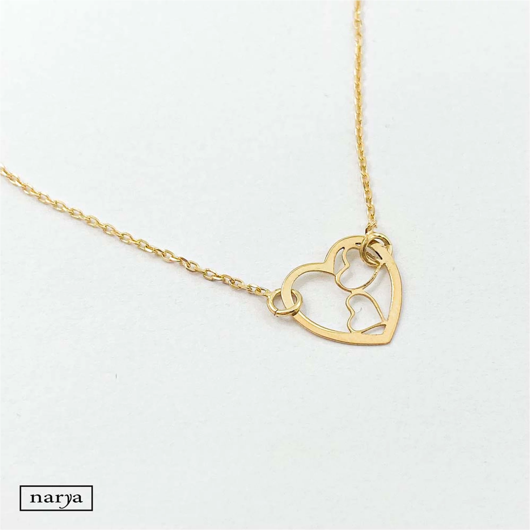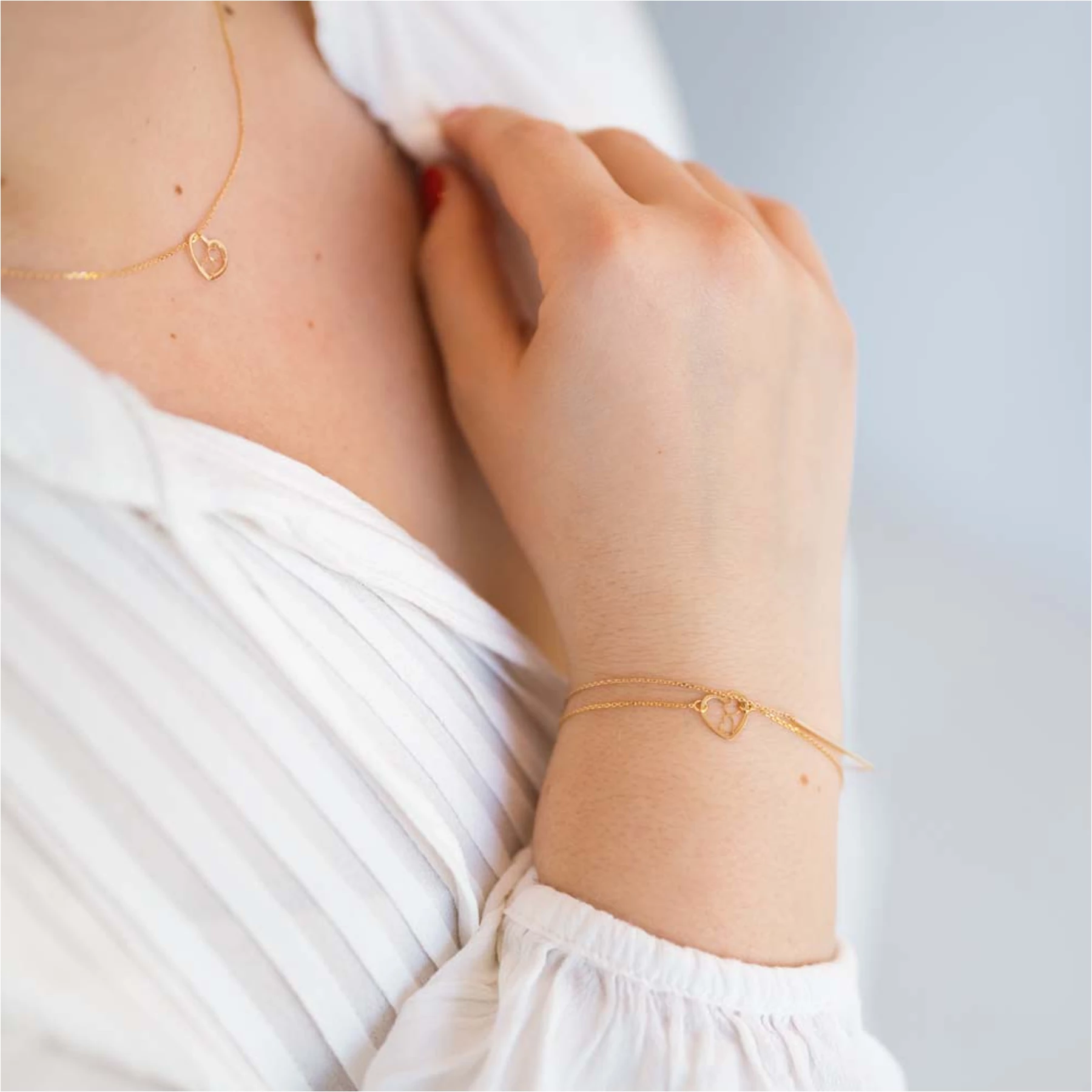 Anett karkötőnk egy igazán visszafogott 14 karátos, vékony arany karkötő, szivecskés betéttel. A medálon több apró szív jelenik meg, melyek egy nagyobb szívben helyezkednek el.