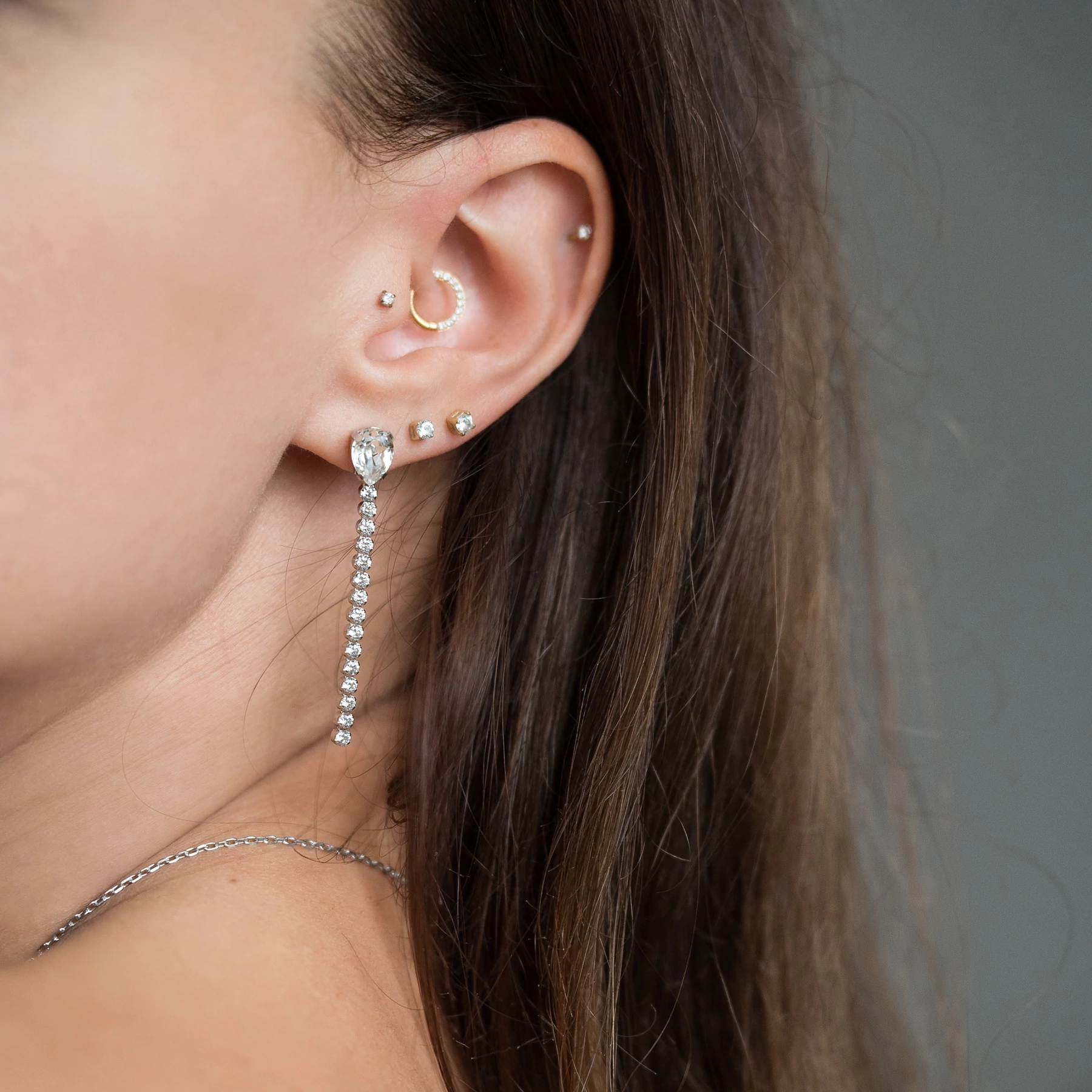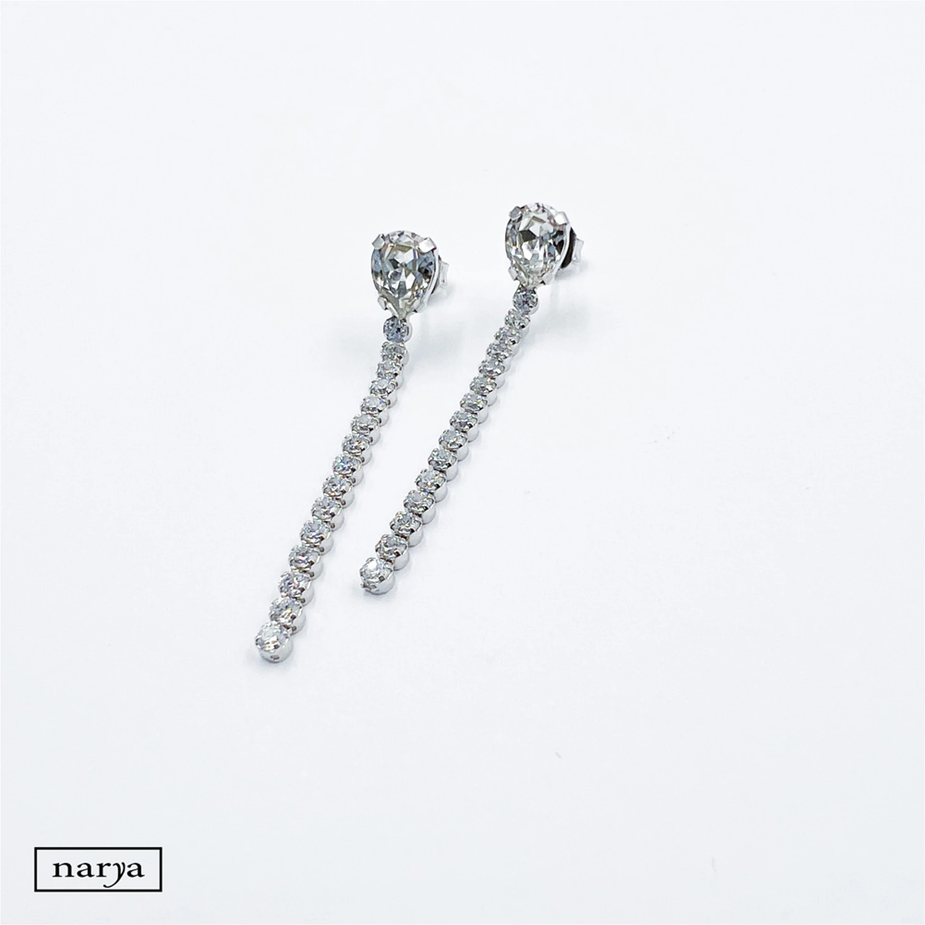 Antonietta ékszerünk egy csodálatos, swarovski kristályokkal díszített, ródiumozott, lógós fülbevaló, melynek rögzítése stekkeres. Tökéletes viselet akár egy különlegesebb alkalomra, vagy egy menyasszony számára a nagy napon.