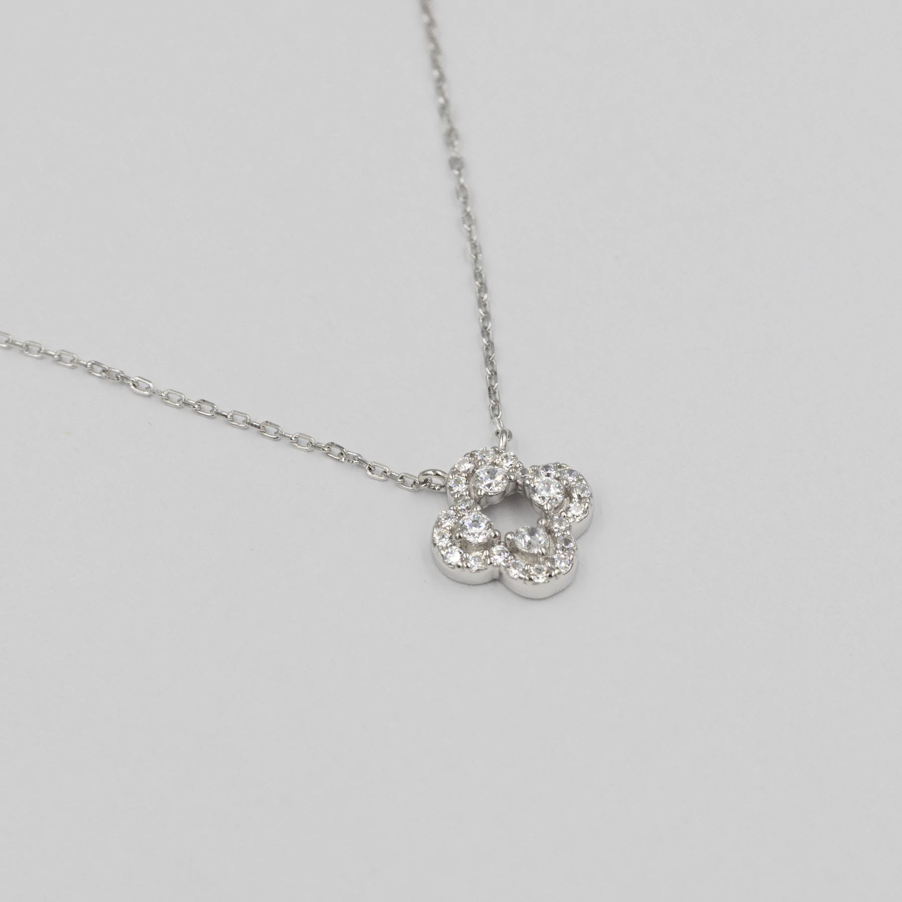 Azra ezüst nyakláncunk egy ródiumozott ékszer, melyet egy rajta lógó, négylevelű lóhere formájú, gyönyörű cirkónia kövekkel díszített medál teszi igazán különlegessé. Ezüst, ródium bevonattal ellátott Azra nyakláncunk nagyon letisztult, mégis tökéletesen megállja a helyét akár különleges alkalmakkor is.