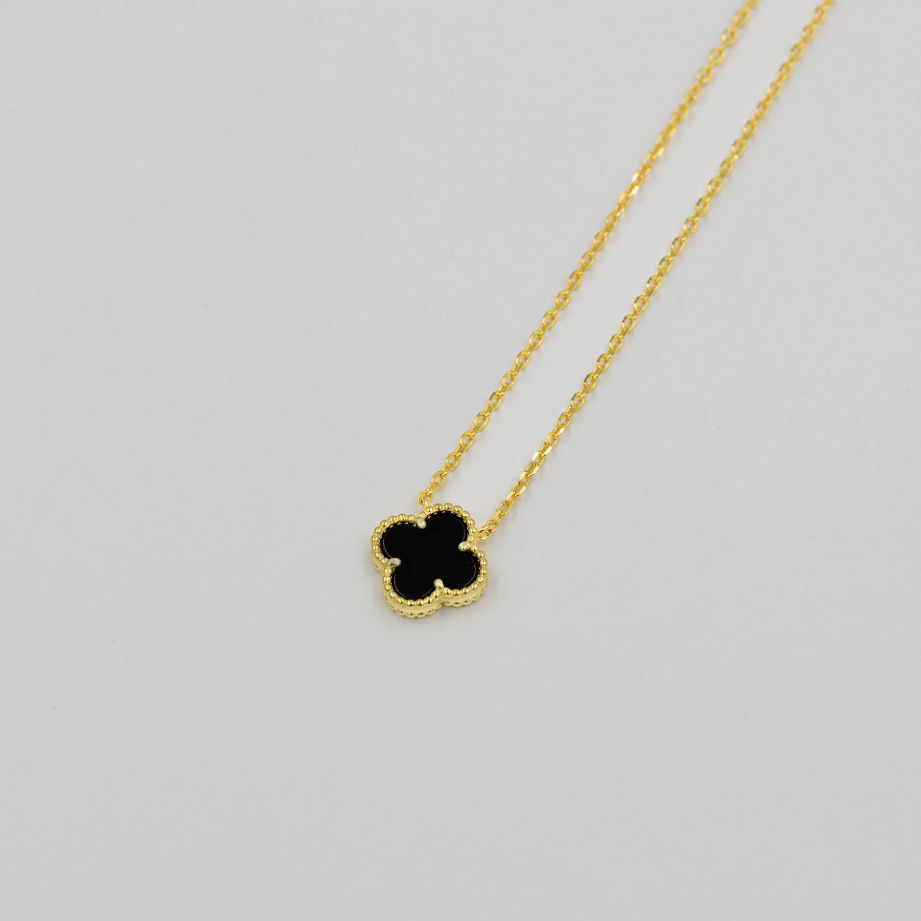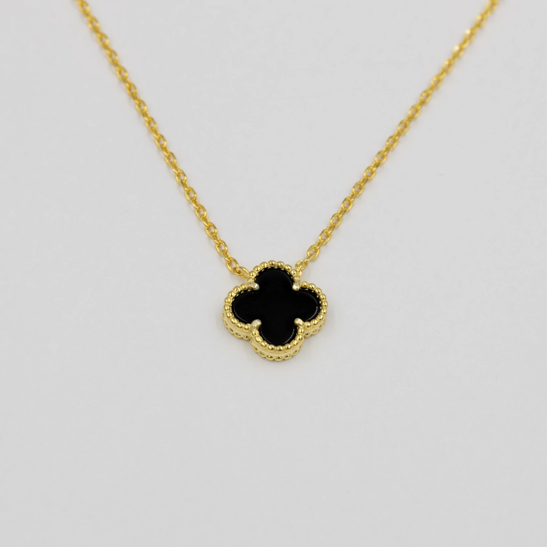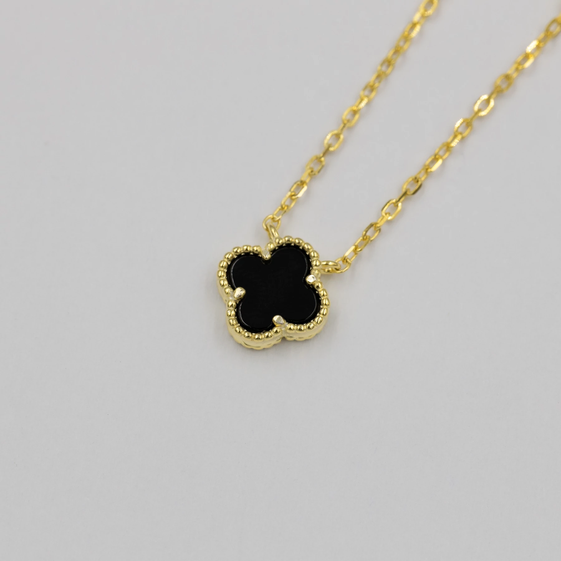 Csermely ezüst nyakláncunk egy aranyozott ékszer, melyet egy rajta lógó, aranyozott és fekete kő díszítésű medál teszi igazán különlegessé. Ezüst, aranyozott Csermely nyakláncunkon a medál egy négylevelű lóhere formát ábrázol.