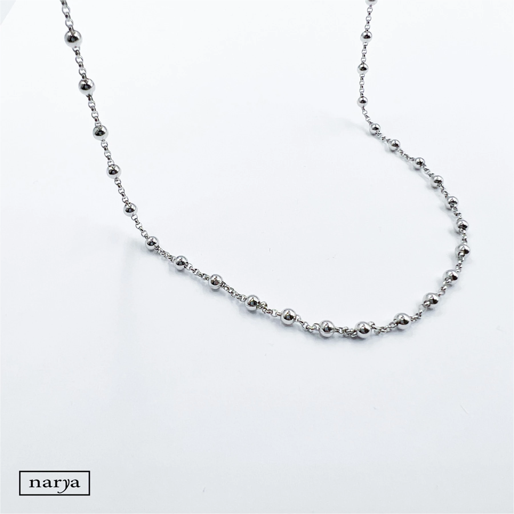 Ezüst, állítható hosszúságú, nagyobb bogyókkal díszített, ródiumozott bevonattal ellátott deréklánc. Egy deréklánc tökéletes viselet nyáron a strandon, akár egy nyaraláson, egy fesztiválon és még megannyi eseményen. Könnyű viselet, nem túl feltűnő, igazán egyszerűen kombinálható bármely más ékszerrel.