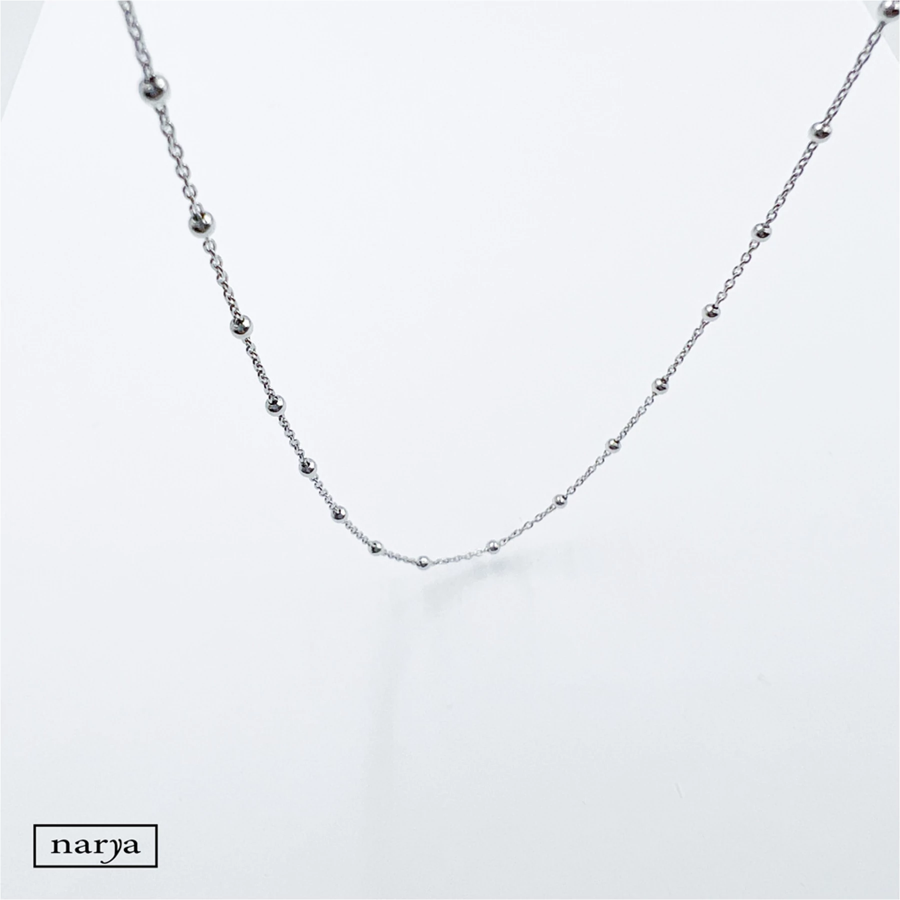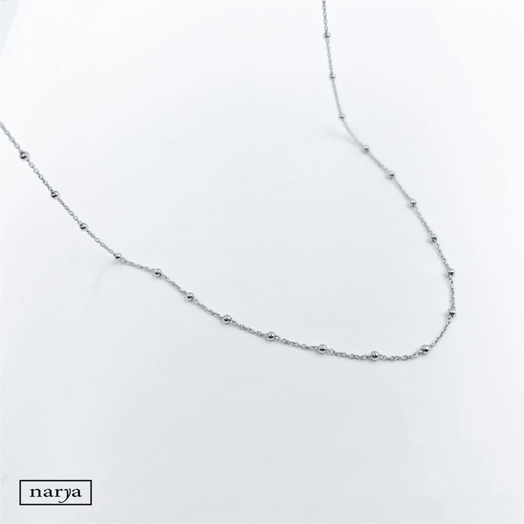Ezüst, állítható hosszúságú, pici bogyókkal díszített, ródiumozott bevonattal ellátott deréklánc. Egy deréklánc tökéletes viselet nyáron a strandon, akár egy nyaraláson, egy fesztiválon és még megannyi eseményen. Könnyű viselet, nem túl feltűnő, igazán egyszerűen kombinálható bármely más ékszerrel.