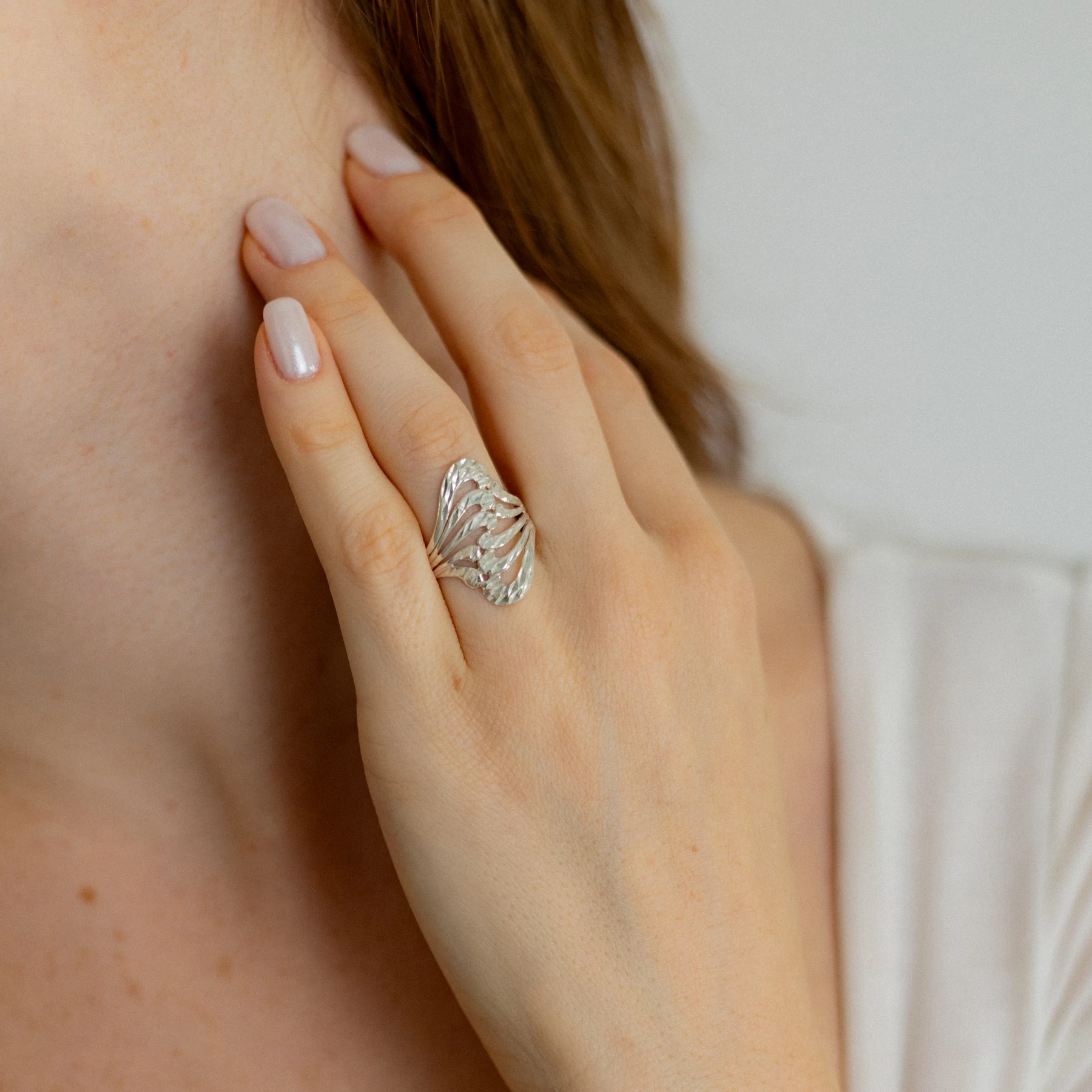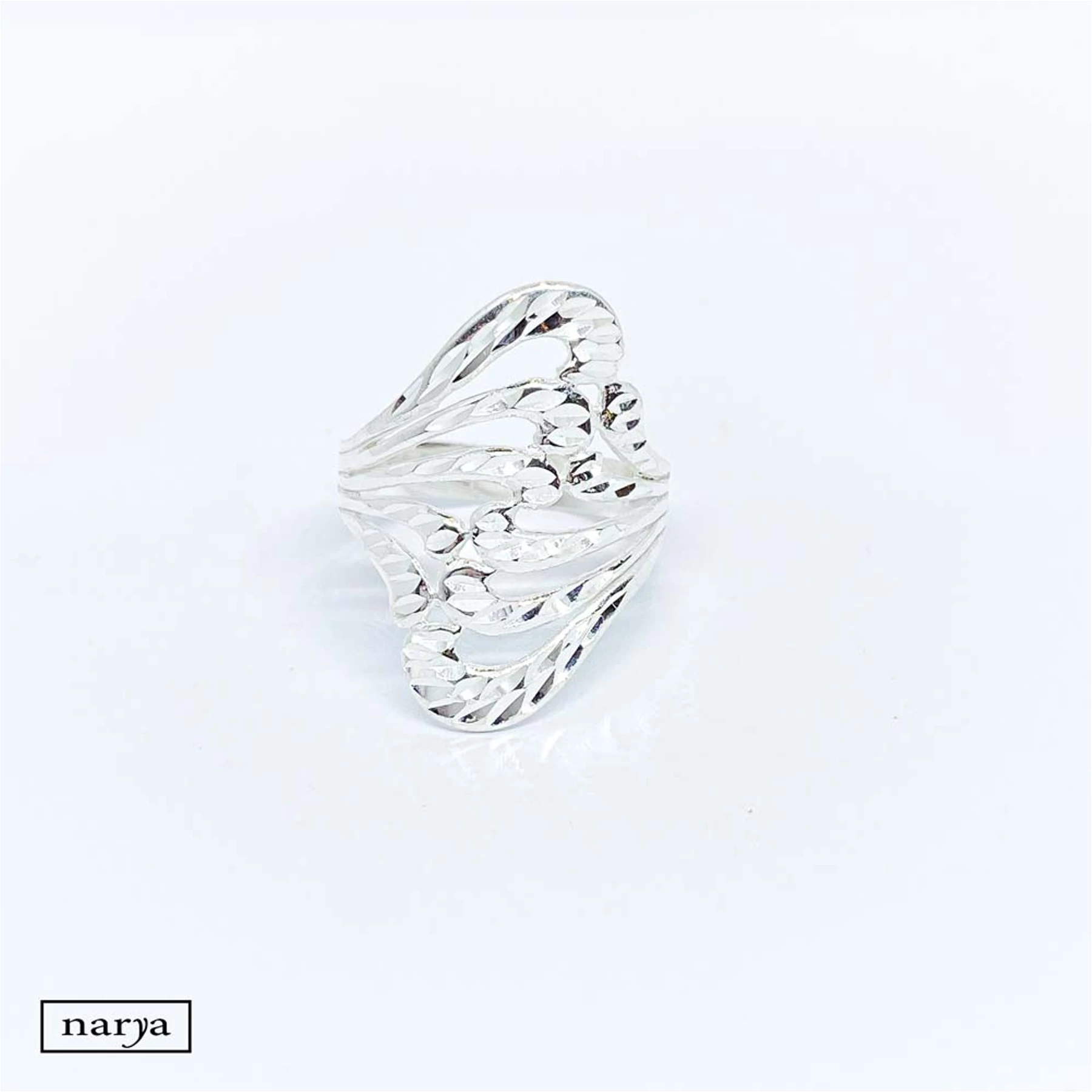 Változó véséssel díszített, mutatós, ezüst gyűrű.