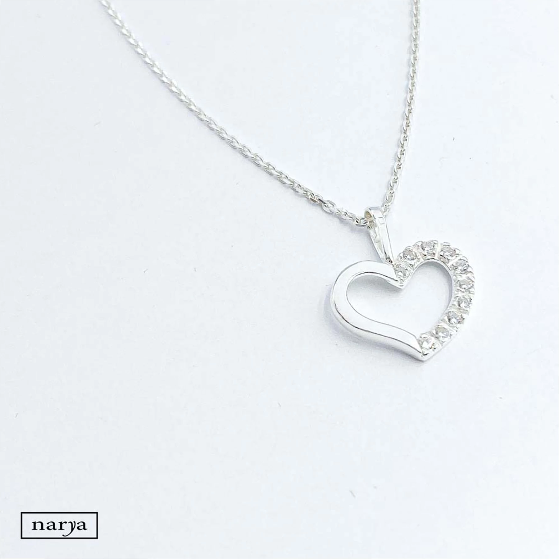 Julitta ezüst nyakláncunk 925 ezrelékes finomságú ezüstből készült. A szív medál egyik felét foglalt, apró cirkónia kövek díszítik. Az anker nyaklánc különböző hosszúságban választható.