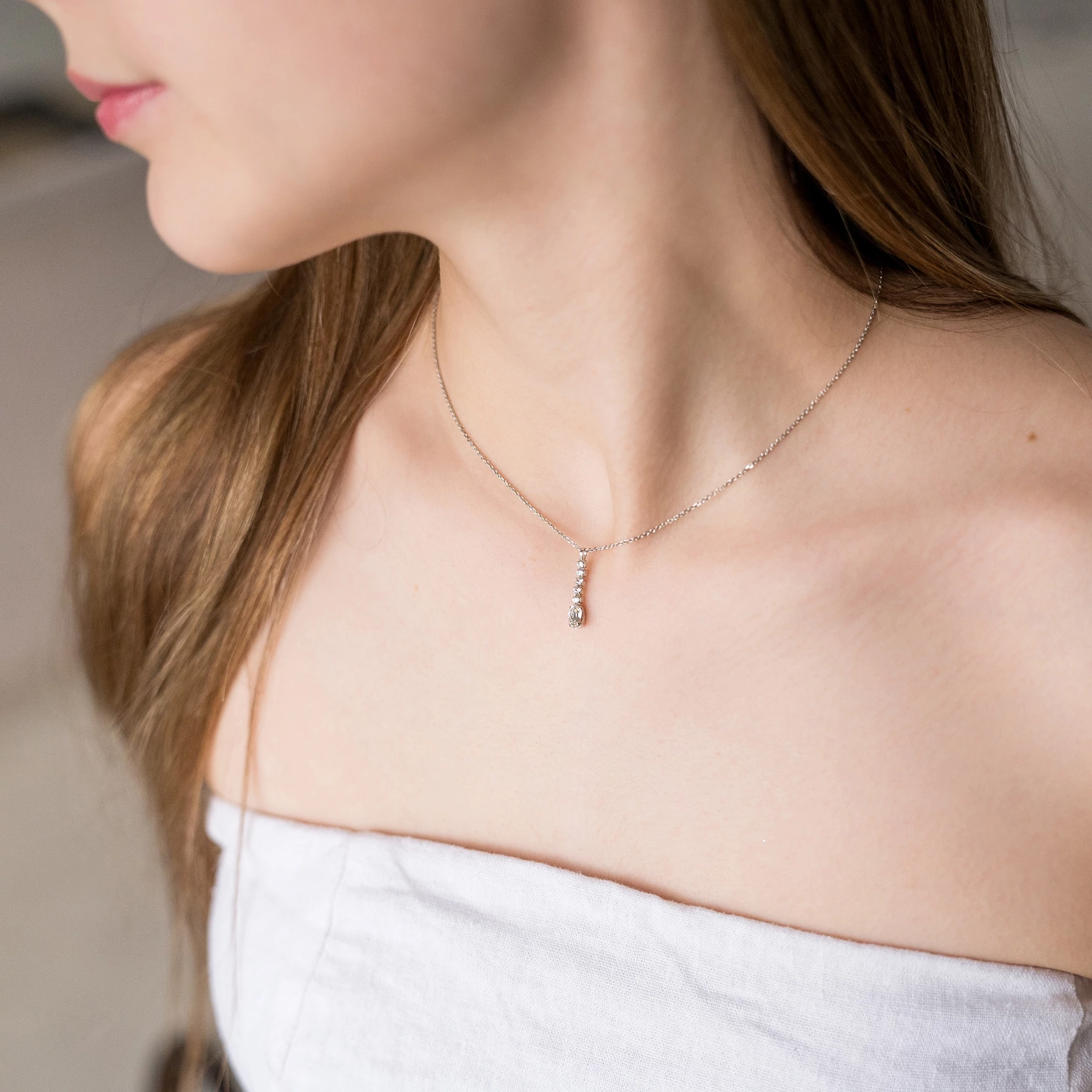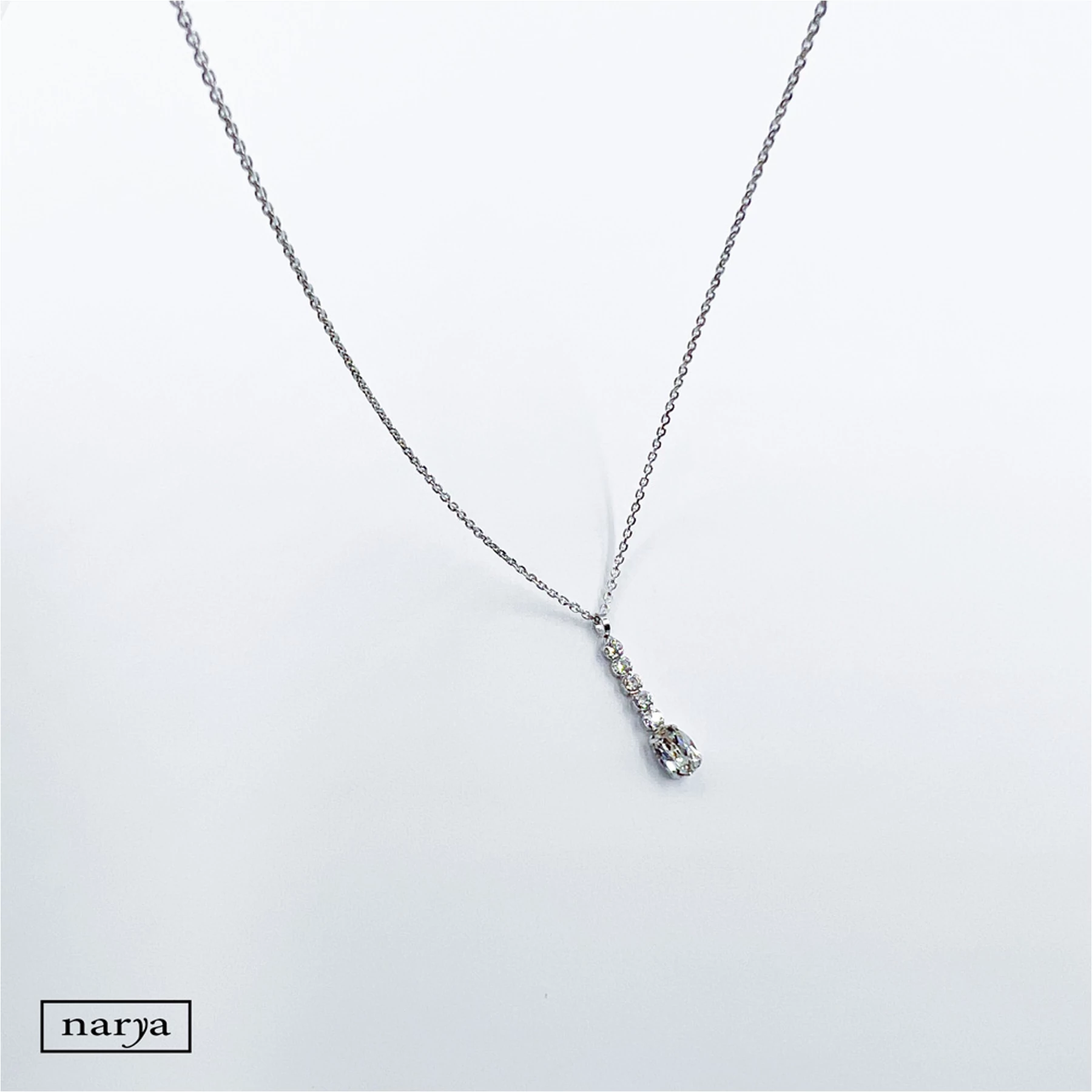 Klarissza nyakláncunk 925 ezüstékszer. A nyaklánc ródiumozott és a lógós medálrészét, csillogó Swarovski kristályok díszítik.