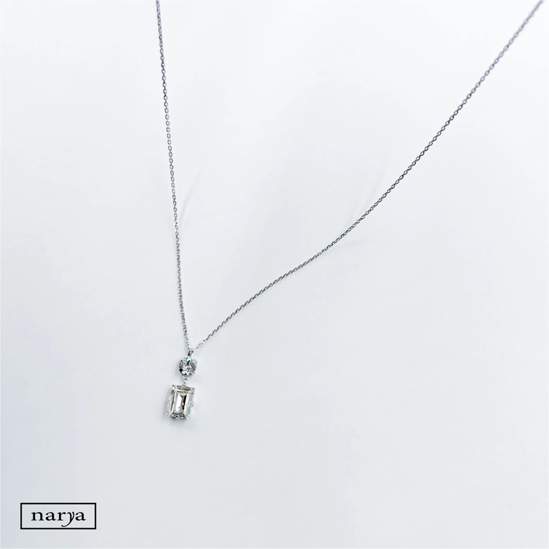 Krízia nyakláncunk egy gyönyörű ezüst, ródiumozott bevonattal ellátott, swarovski kristályokkal díszített, lógó medálos nyaklánc.