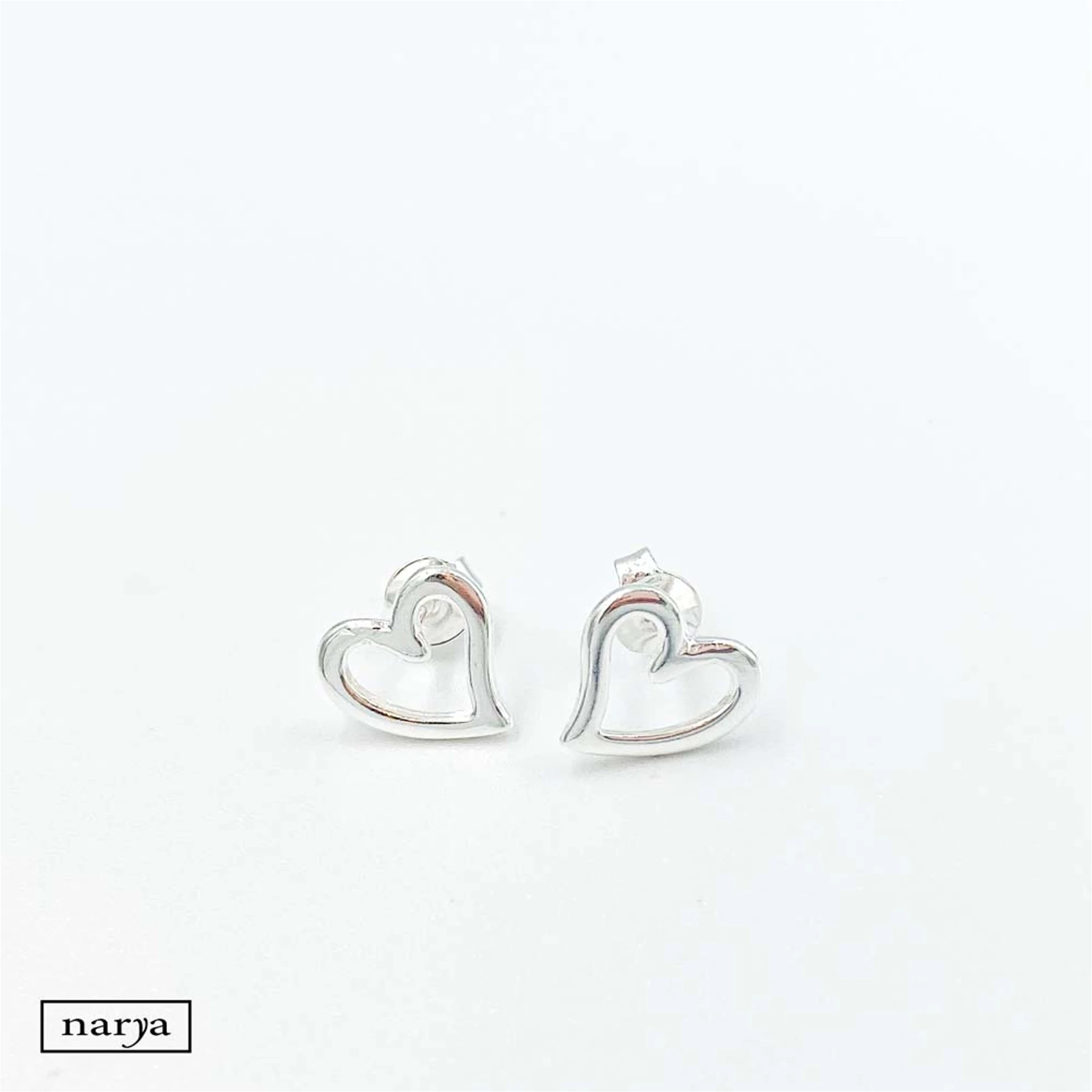 Ezüst, szív formájú, stekkeres rögzítésű fülbevaló.
