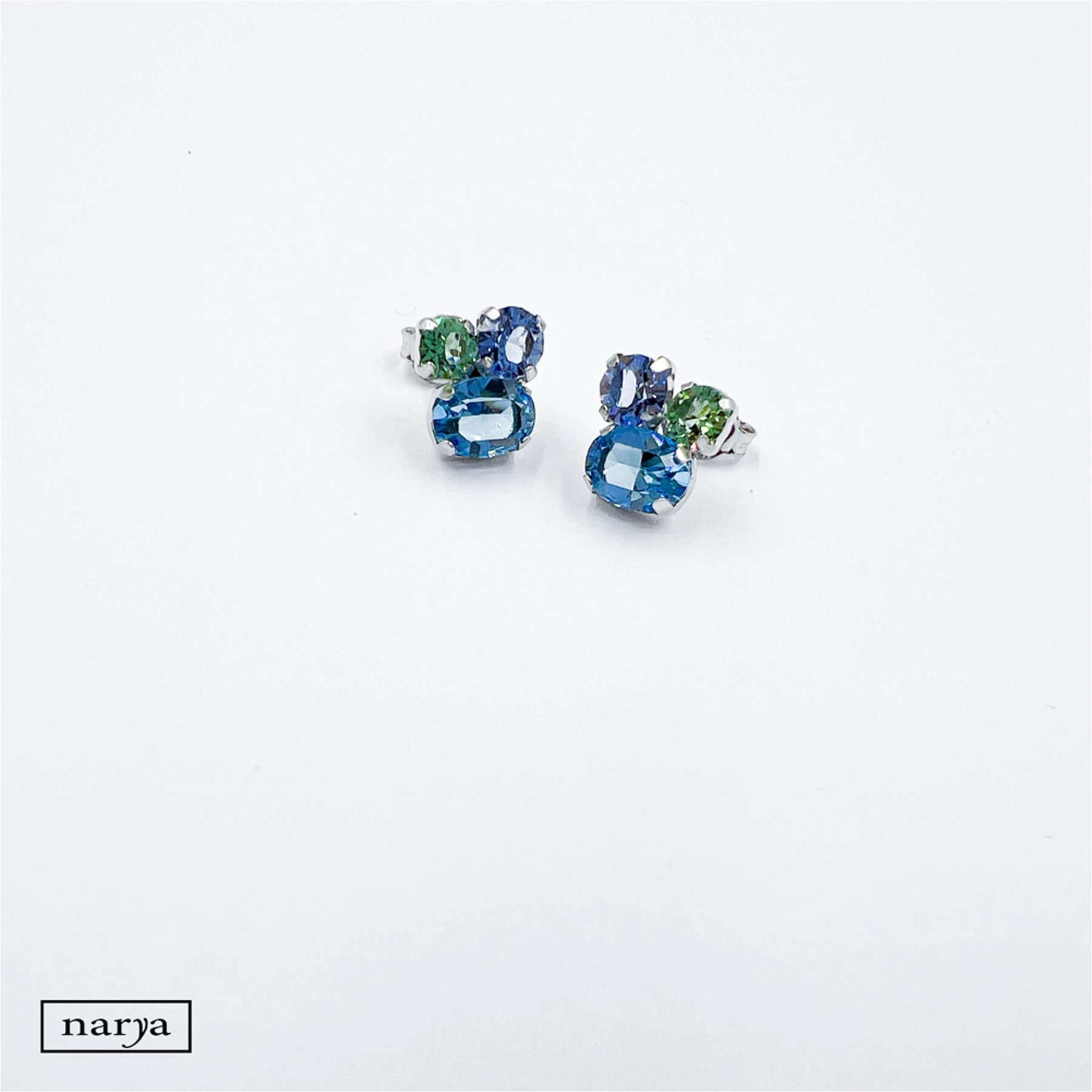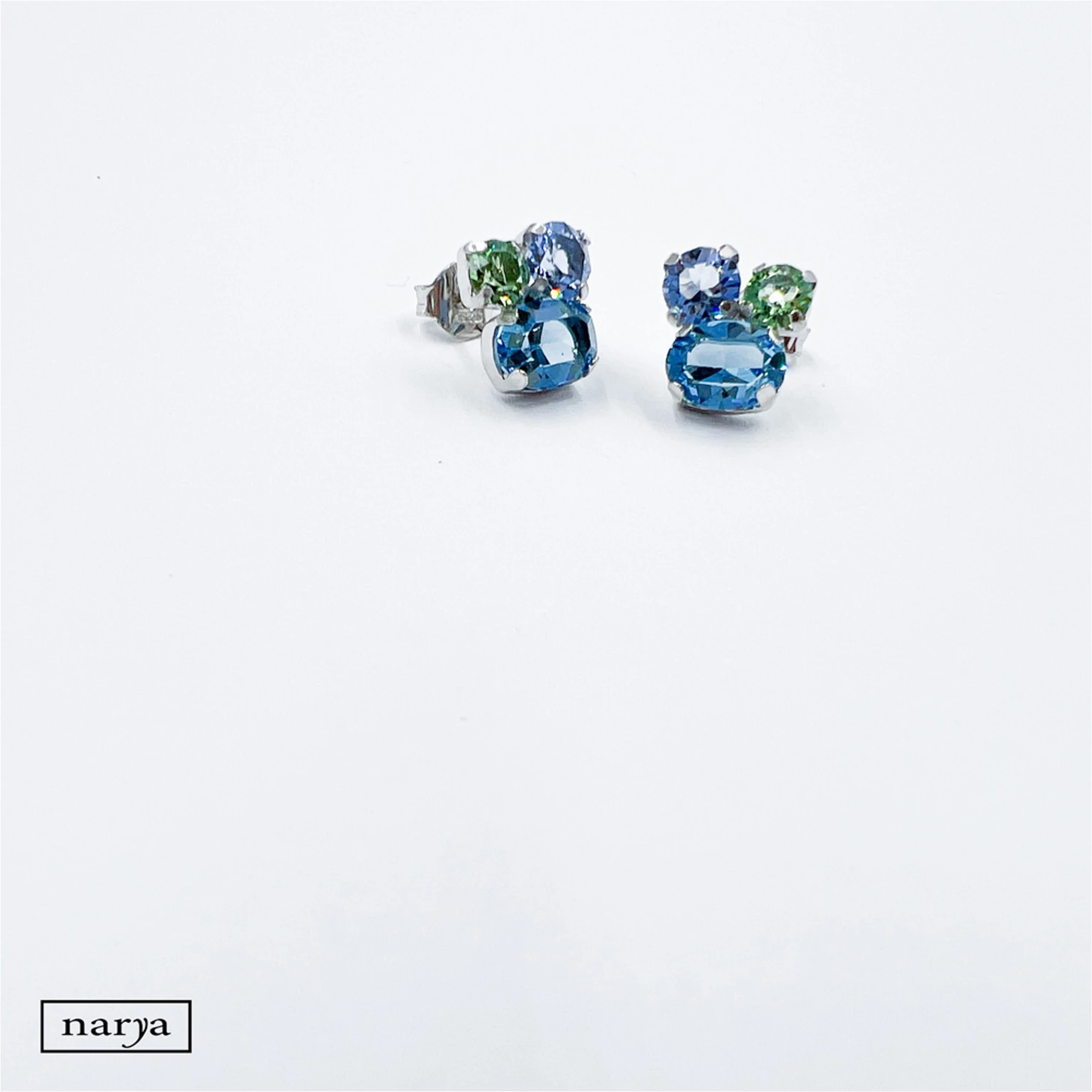 Ezüst Nóri ékszerünk egy csodásan csillogó, swarovski kristályokból álló, stekkeres rögzítésű, ródiumozott fülbevaló. Menyasszonyok számára tökéletes, amennyiben szükségük van valami kékre az Esküvőjük napjára. A swarovski kristályok egymáshoz kapcsolódnak, karmos foglalatuk van, színeik pedig: világos kék, sötétebb kék és zöld.