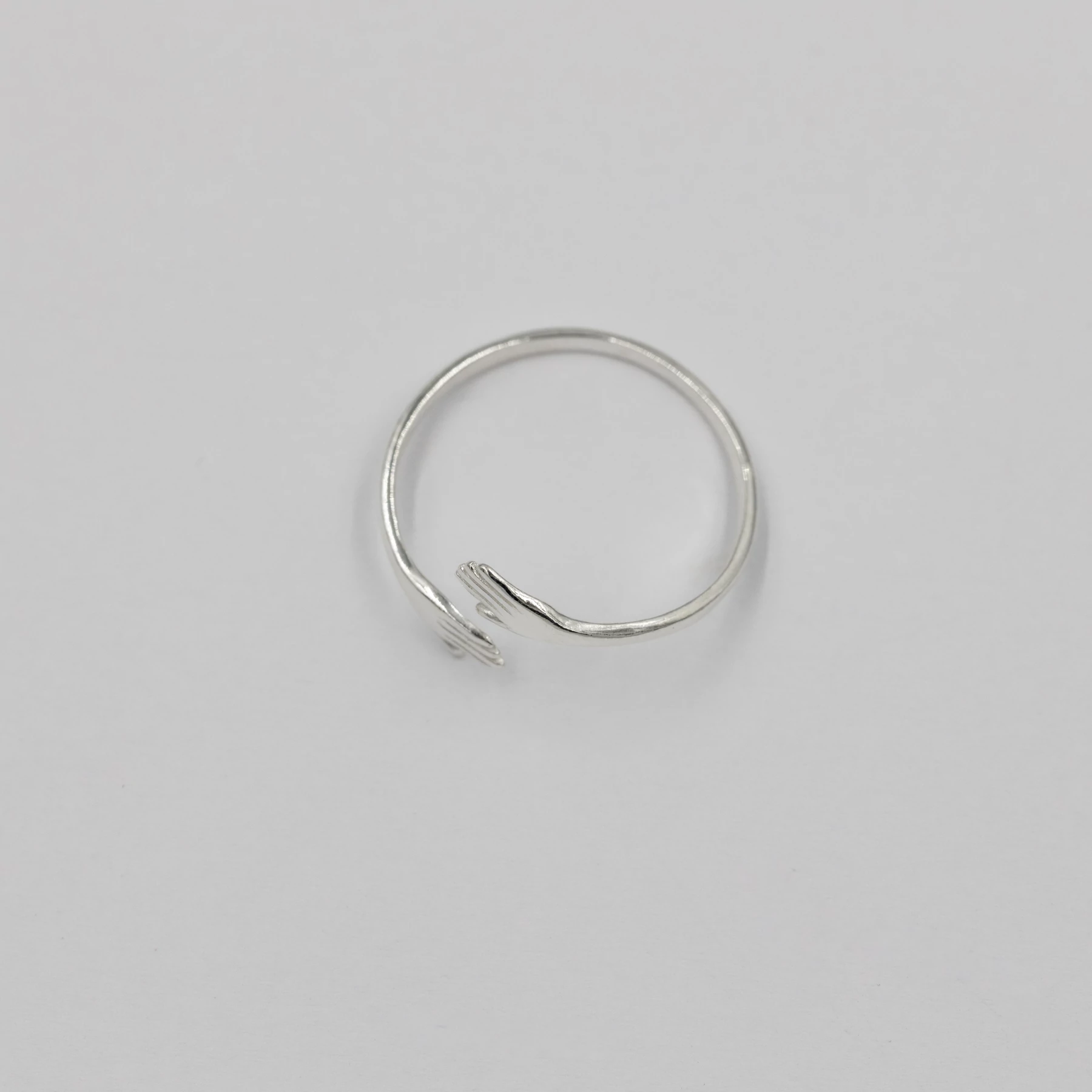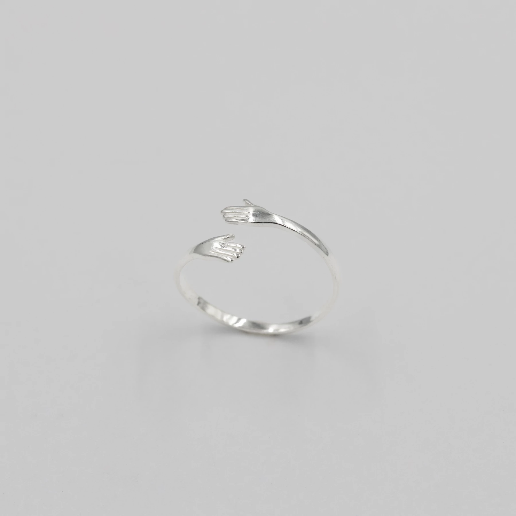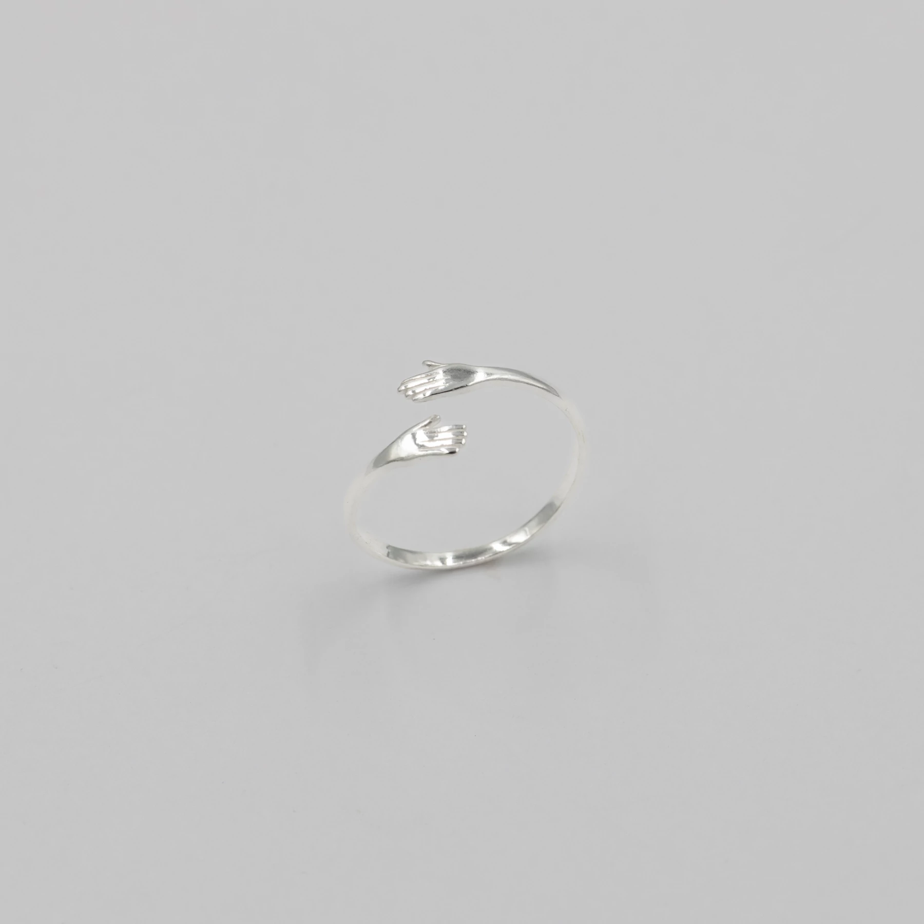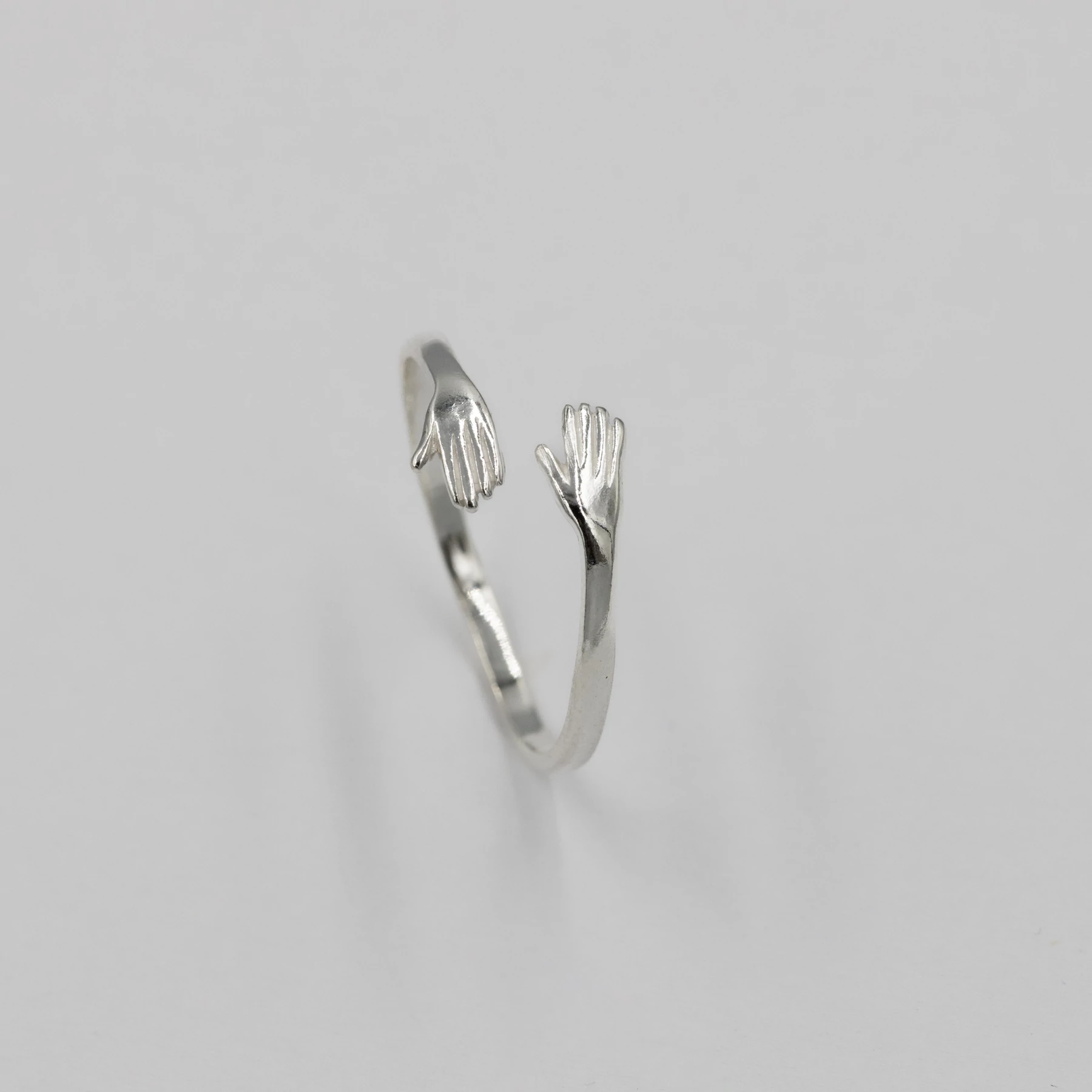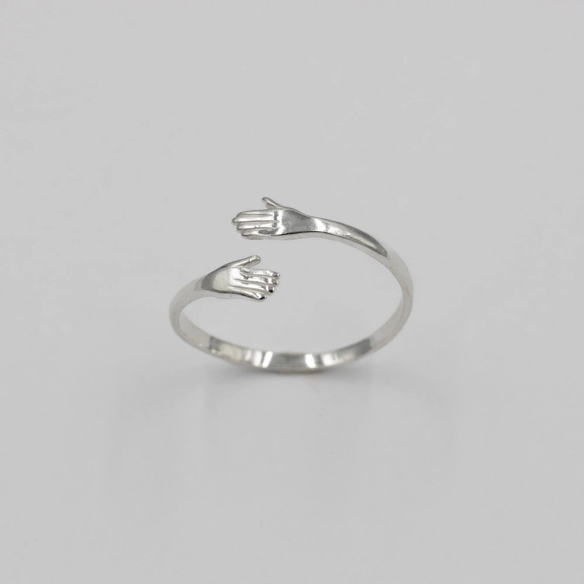 Ölelés ezüst gyűrűnk egy jelentéssel bíró, igazán kedves és szép ezüst ékszer. Állítható méretű ezüst gyűrű, melyen két kéz látható. A kezek egymással szemben néznek és ölelik át az ujjat. Imádnivaló ékszer.