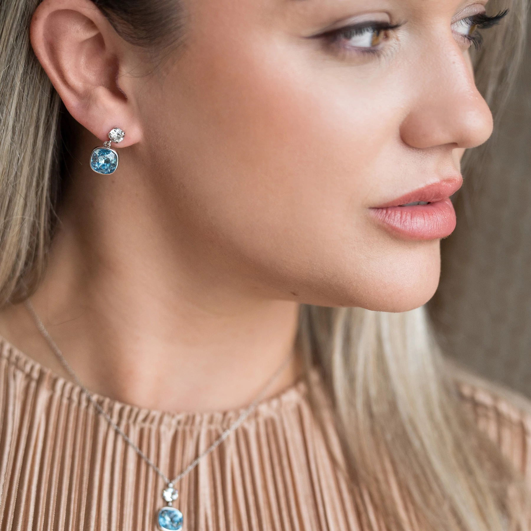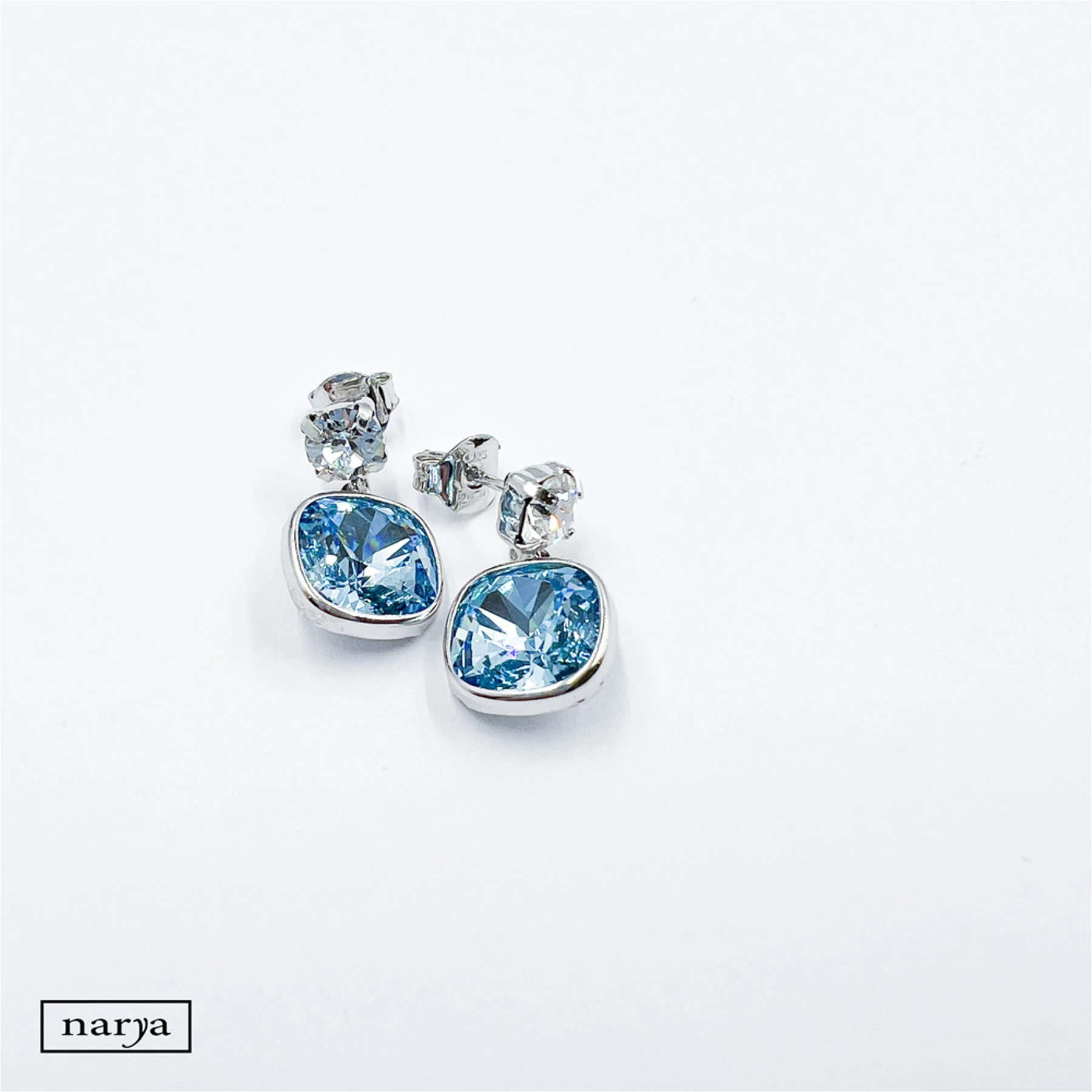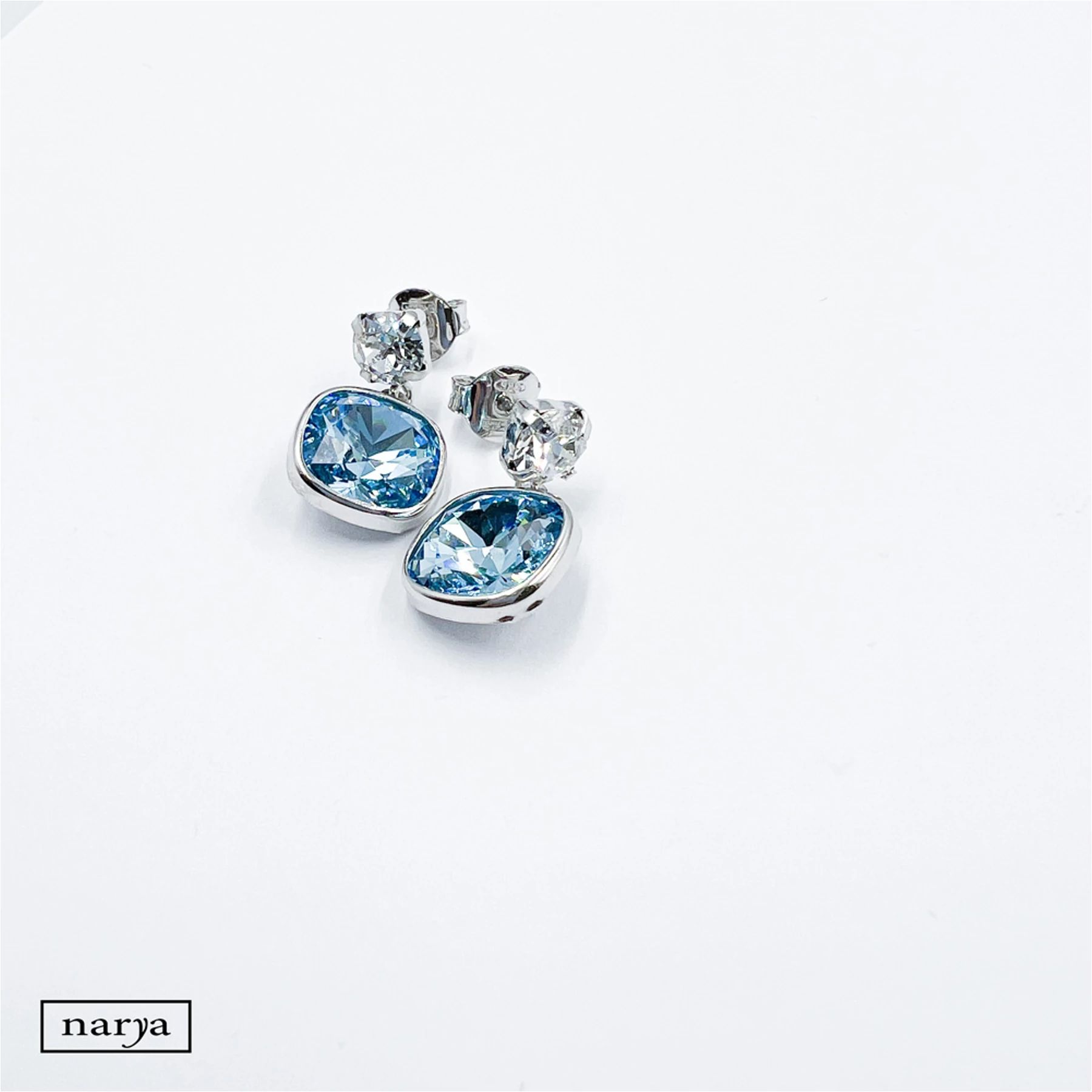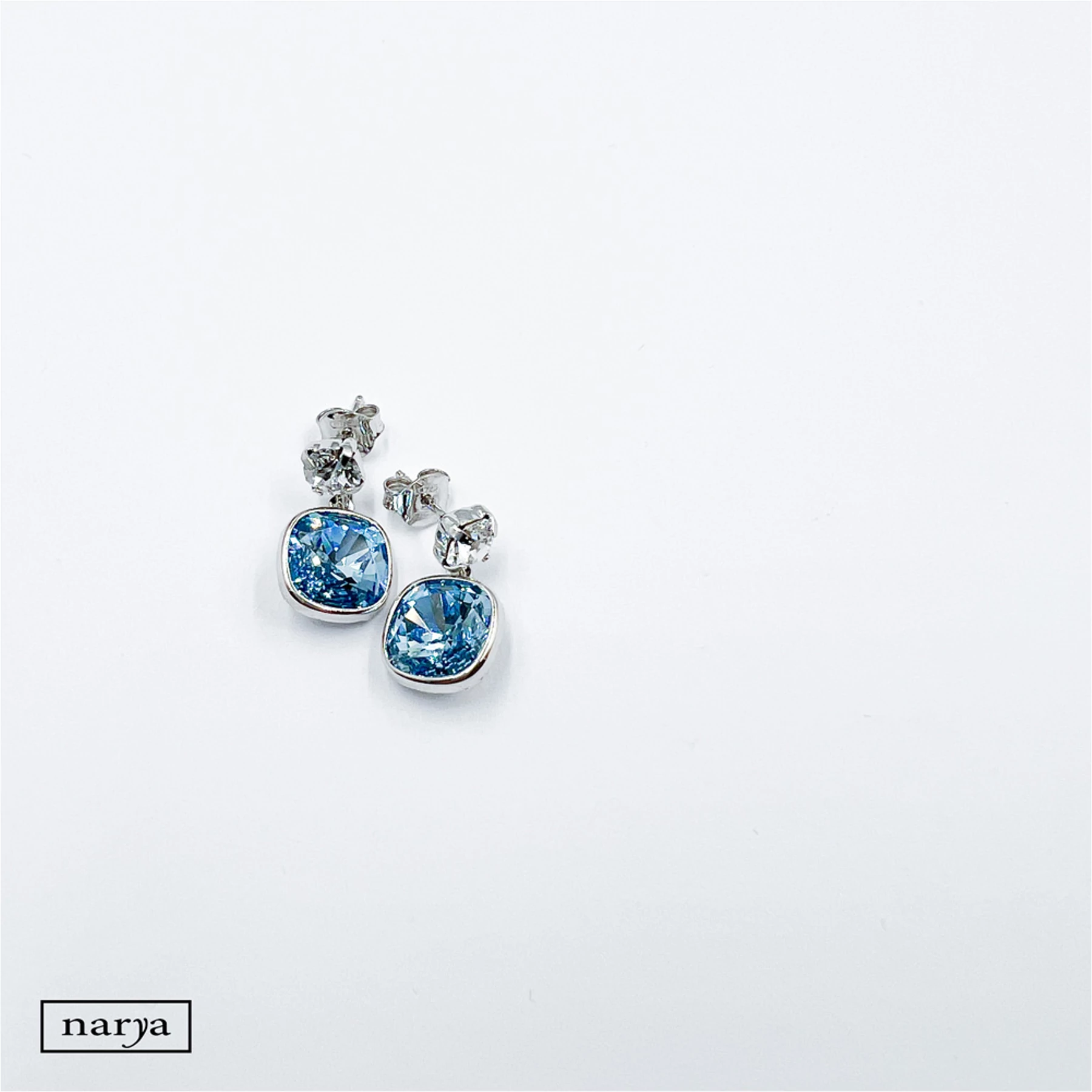 Olga ékszerünk egy csodálatos, kék és fehér swarovski kristályokkal díszített, ródiumozott, picit lógós fülbevaló, melynek rögzítése stekkeres. Tökéletes viselet akár egy különlegesebb alkalomra, vagy egy menyasszony számára a nagy napon.
