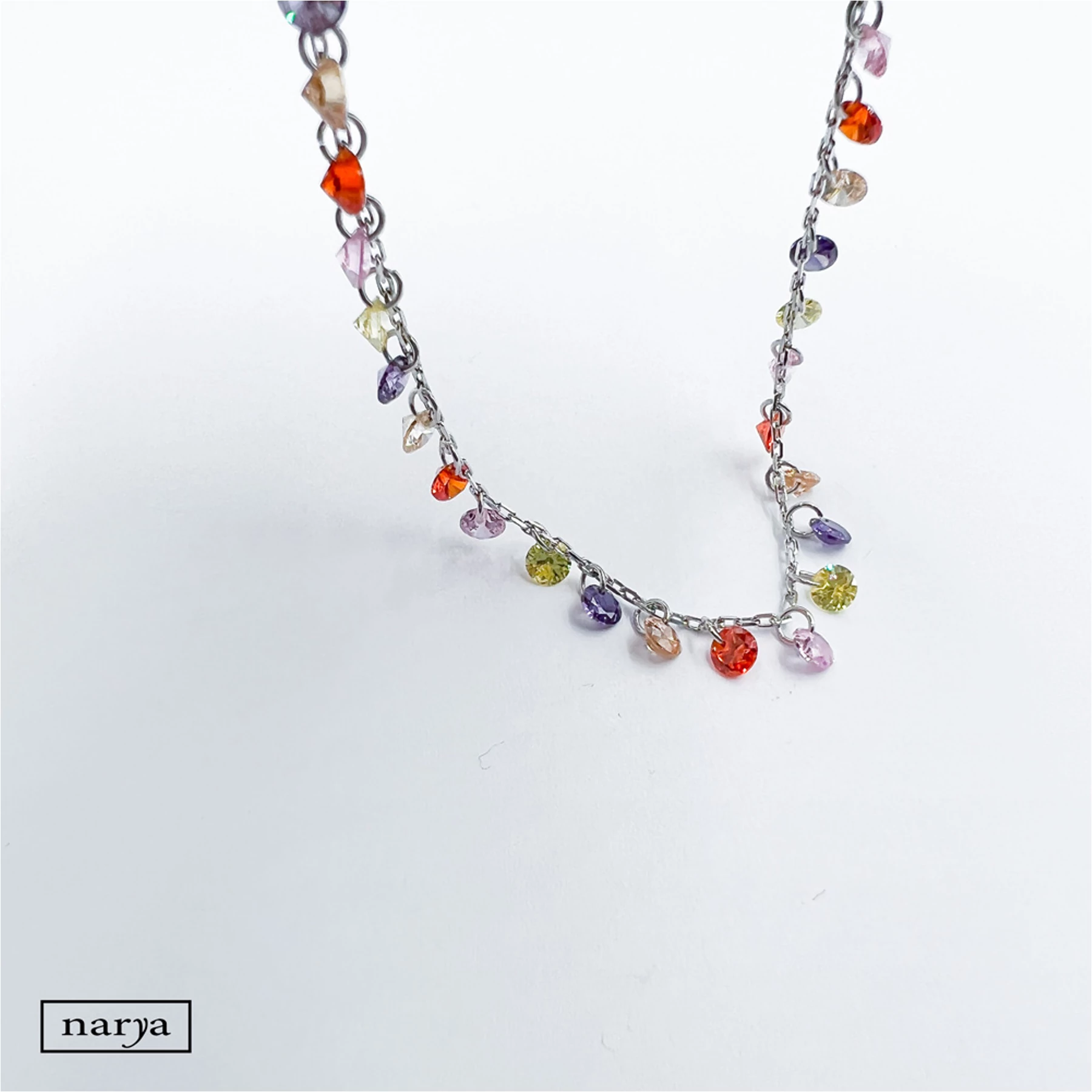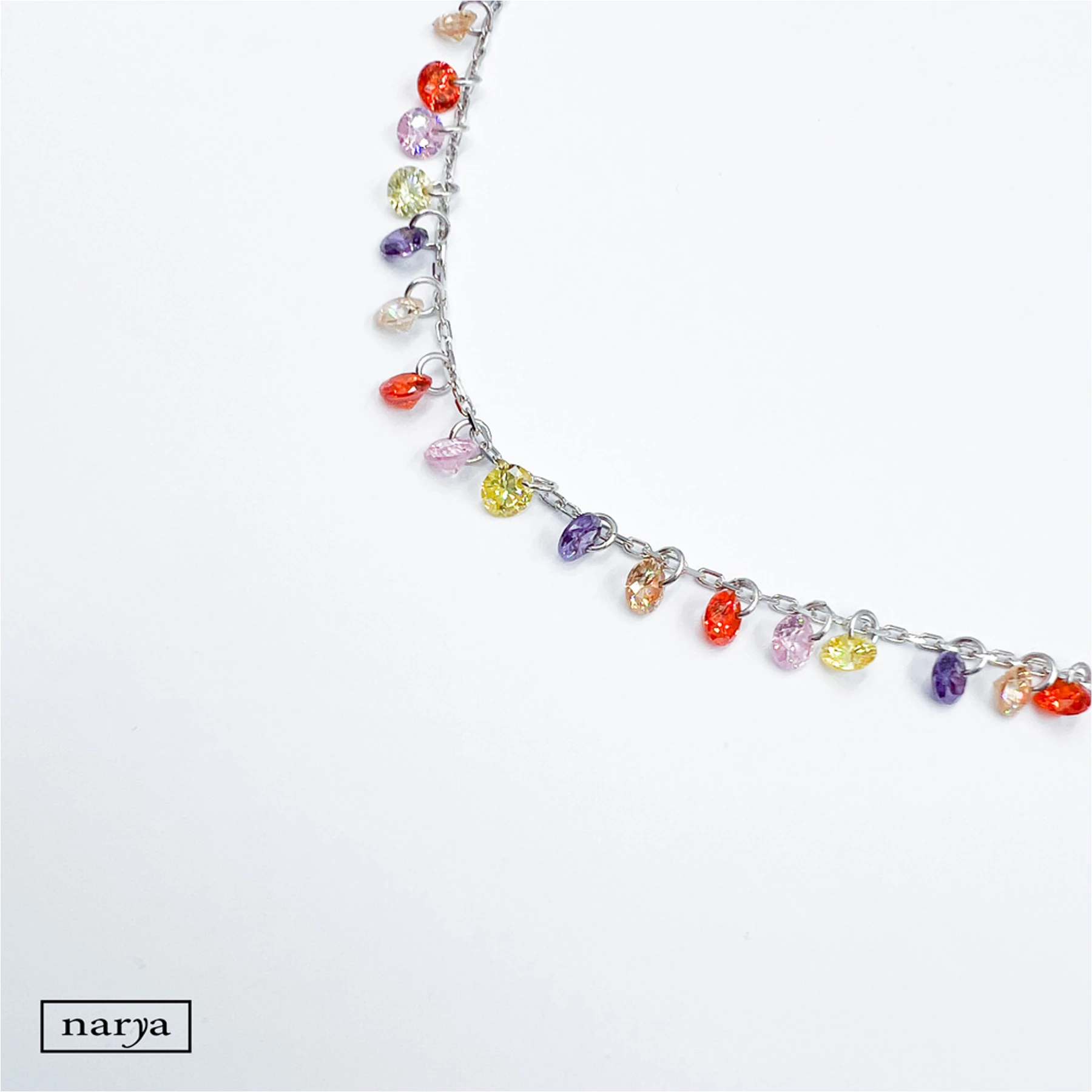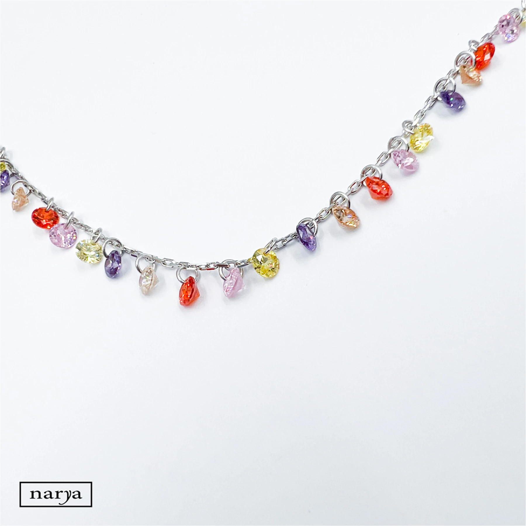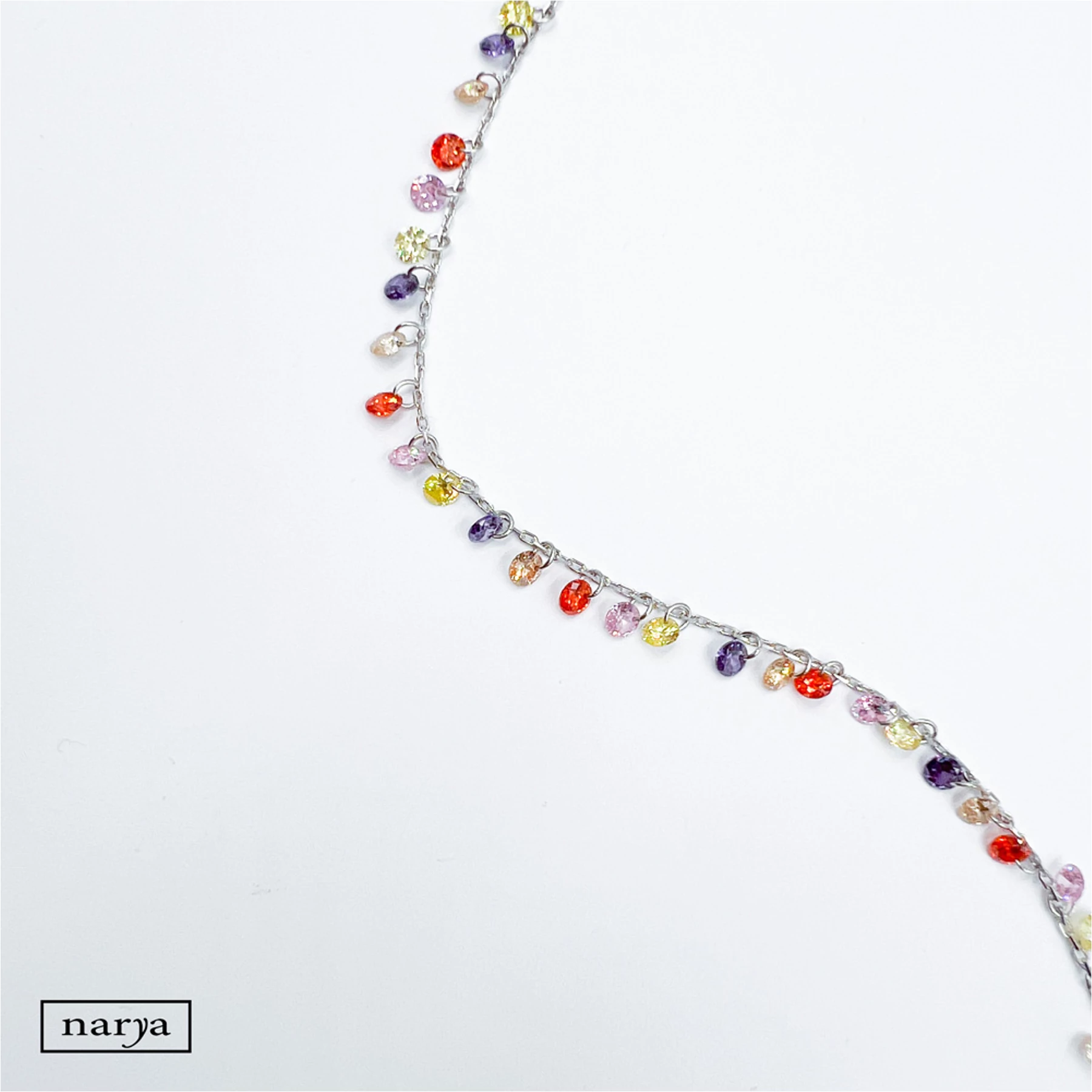Petra ékszerünk egy nagyon mutatós, igazán nyárias, színes cirkónia köves, ródiumozott bokalánc. Tökéletes viselet akár a mindennapokon is egy szép nyári napon.