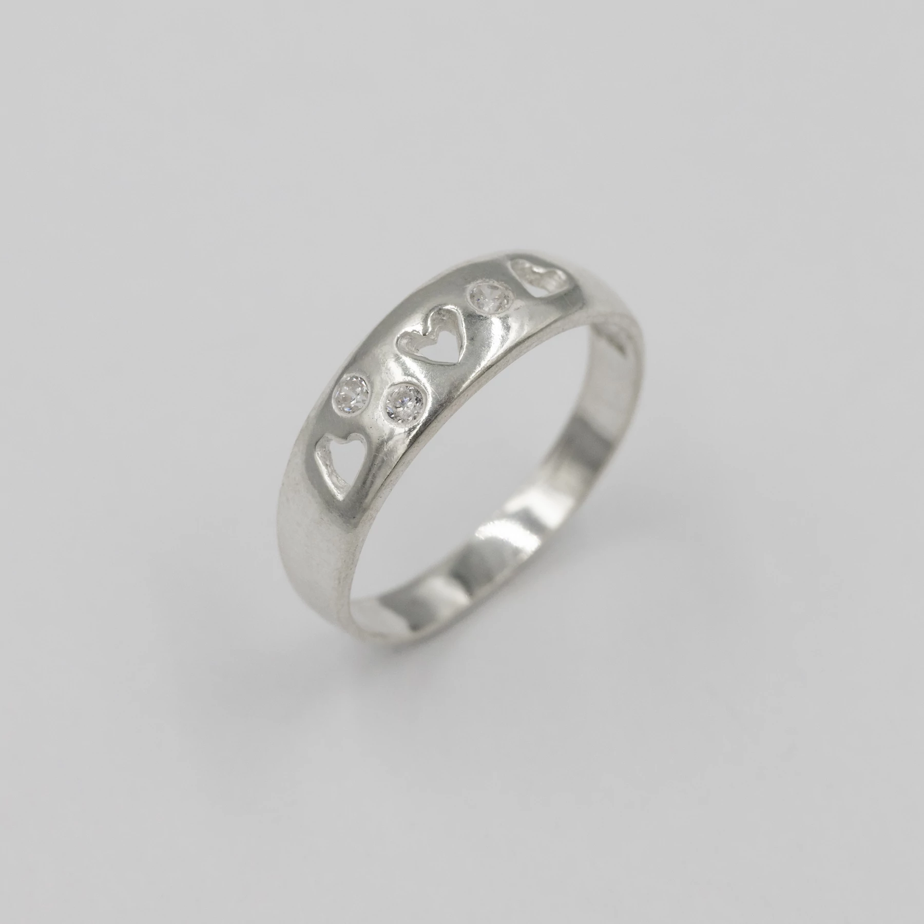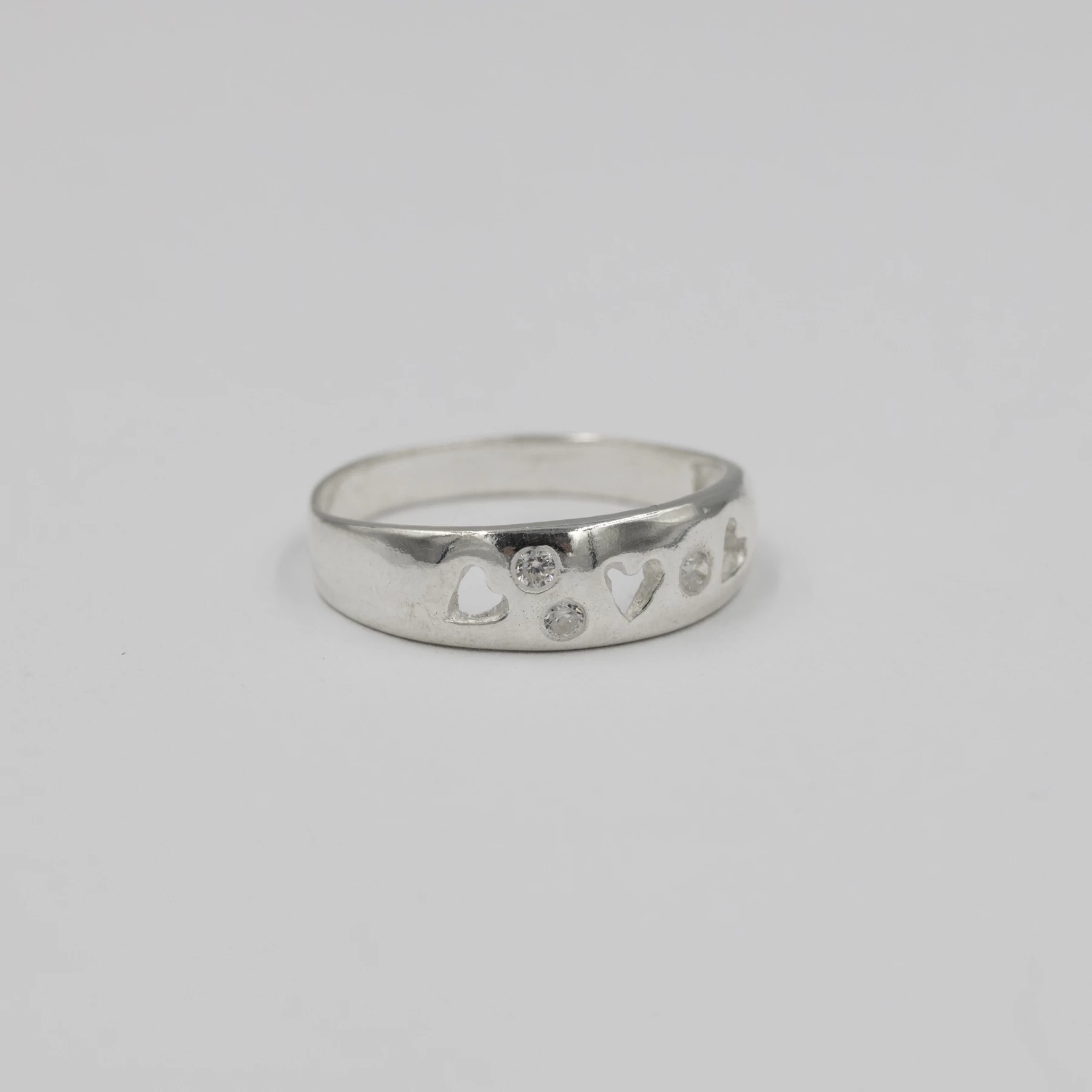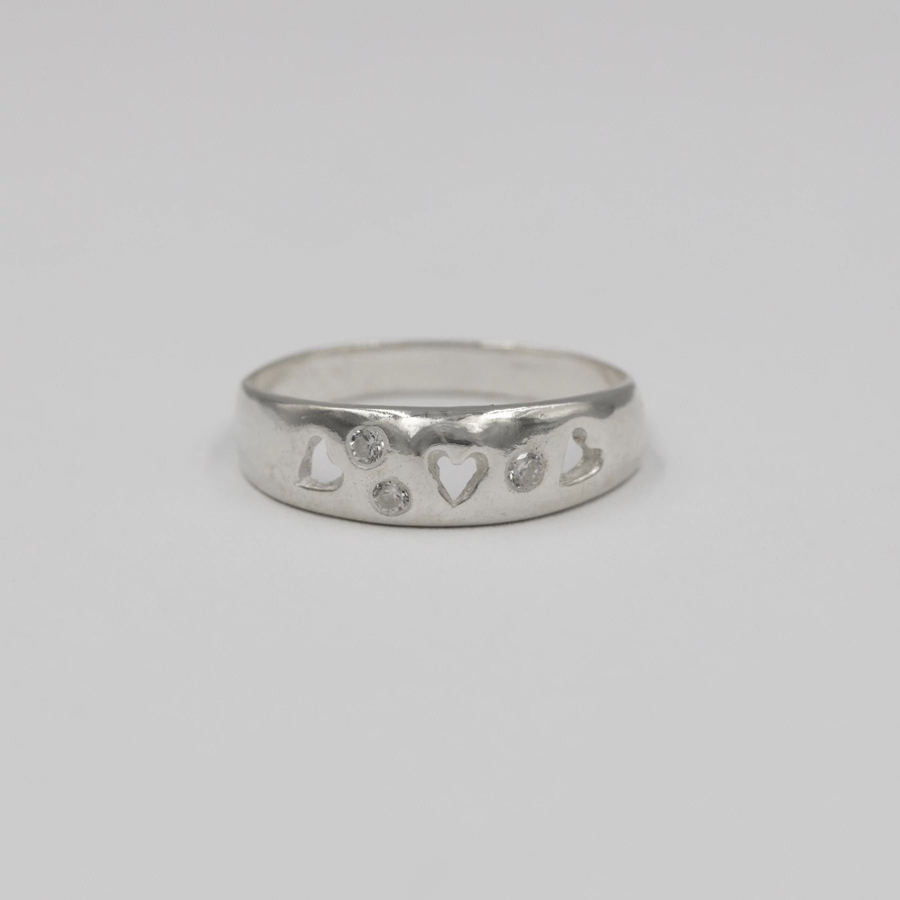Szeretet ezüst gyűrűnk egy igazán különleges és szép ékszer. Ez az ezüst gyűrű áttört szív mintázatú, és apró cirkónia kövekkel van feldíszítve. Nagyon egyedi ezüst ékszer, mely gyönyörűen mutat az ujjakon.
